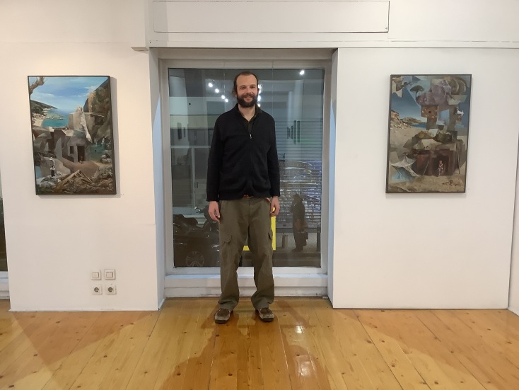 Παρατηρώντας τους πίνακες, υπάρχει μια συνεχής αίσθηση πως στήνεις ένα θεατρικό σκηνικό για μια παράσταση όπου συναντώνται το ρεαλιστικό με το σουρεαλιστικό, ακόμη και την επιστημονική φαντασία. Ακόμα και ο τίτλος της έκθεσής σου, Αρμογές, παραπέμπει σε μια περίεργη εφαρμογή όπου εξωτερική πραγματικότητα και μνήμες συνδιαλέγονται μέσα από παράλληλες εικόνες - δεν μπορώ να ορίσω αν είναι τοπία μετααποκαλυπτικής γέννησης μετά από μια καταστροφή ή επικείμενο τέλος μιας ζωής που το οξυγόνο της εξαντλείται. Ποιο από τα δυο συμβαίνει;