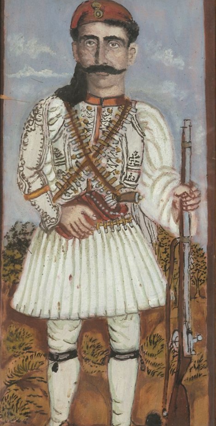«Πατὴρ τοῦ ὈΔυσσέως Ἀνδροῦτσου Πρώην (sic) τὸ 1821 Ὁ Καπεταν λεωνίδας Ἀνδροῦτσος το 1795», 1931, Συλλογή Μουσείου Θεόφιλου Δήμου Μυτιλήνης