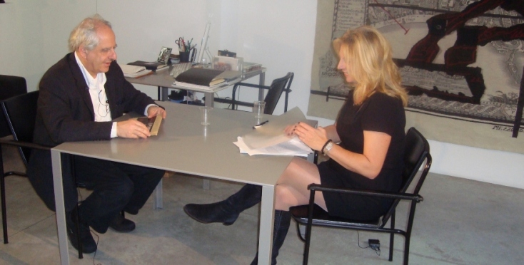 Βρέθηκε, αλήθεια, μπροστά σε μεγάλες δυσκολίες στα γυρίσματα; «Όταν η Ελλάδα κατέφυγε για δανεισμό στο ΔΝΤ, συνάντησα δυσκολίες –πολλές φορές και ένα βλέμμα επικριτικό–, από την πλευρά κάποιων ξένων καλλιτεχνών στο να μιλήσουν λόγω της κατάστασης και της διεθνούς εικόνας της χώρας. Θυμάμαι πόσο επιφυλακτικός ήταν ο Τόμας Σούτε όταν πήγα να τον δω στην έκθεσή του στο Μουσείο Reina Sofia. Κάποιοι μου έλεγαν “πόσο ενδιαφέρει τον κόσμο στην Ελλάδα αυτό που θα πούμε εμείς εδώ;”. Τους παραξένευε που η ελληνική δημόσια τηλεόραση ταξίδευε και προσπαθούσε να φέρει πίσω υλικό για τη σύγχρονη τέχνη. Υπήρχε, βέβαια, και η αντίθετη αντιμετώπιση· καλλιτέχνες οι οποίοι αντιλαμβάνονταν ότι η χώρα πέρναγε μια δύσκολη στιγμή και ήθελαν μέσα από το λόγο τους να προσφέρουν ακόμα και μια διάσταση παρηγορητική, μια συζήτηση που ανοίγεται σε άλλες περιοχές της ανθρώπινης δραστηριότητας – στην αλληλεγγύη, την ομορφιά, τον έρωτα. Eίχαμε, φερ’ειπείν, μια ευχάριστη και αστεία συνάντηση με τον Γάλλο καλλιτέχνη Barthélémy Toguo, ο οποίος το 2015 στην Μπιενάλε της Βενετίας είχε δημιουργήσει μια εγκατάσταση που περιλάμβανε και φράσεις της Μέρκελ που απευθύνονταν στa PIGS».
