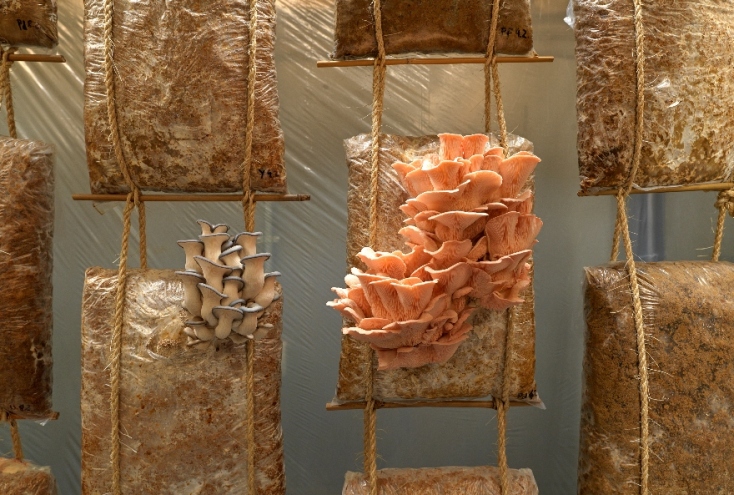 Η εγκατάσταση «Mycelium Garden» (Κήπος μυκηλίων) πρωτίστως φέρνει το κοινό σε επαφή με τον όμορφο κόσμο των μανιταριών. Δείχνει διαφορετικά στάδια της ανάπτυξής τους και παρουσιάζει συναρπαστικές οργανικές μορφές των αναπαραγωγικών οργάνων των μανιταριών. Στο φυσικό περιβάλλον, τα μανιτάρια εξυπηρετούν το σύστημα με διάφορα θετικά αποτελέσματα: Παρέχουν θρεπτικά συστατικά στα φυτά και τα βοηθούν να επικοινωνούν μεταξύ τους. Επίσης, αναπτύσσουν χώμα και μερικά έχουν την ικανότητα να καθαρίζουν το μολυσμένο έδαφος. Με αυτόν τον τρόπο διατηρούν το περιβάλλον υγιές.