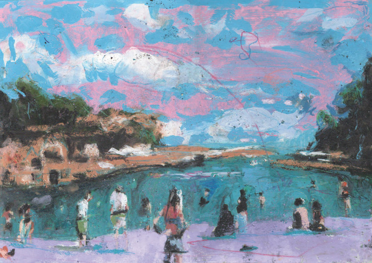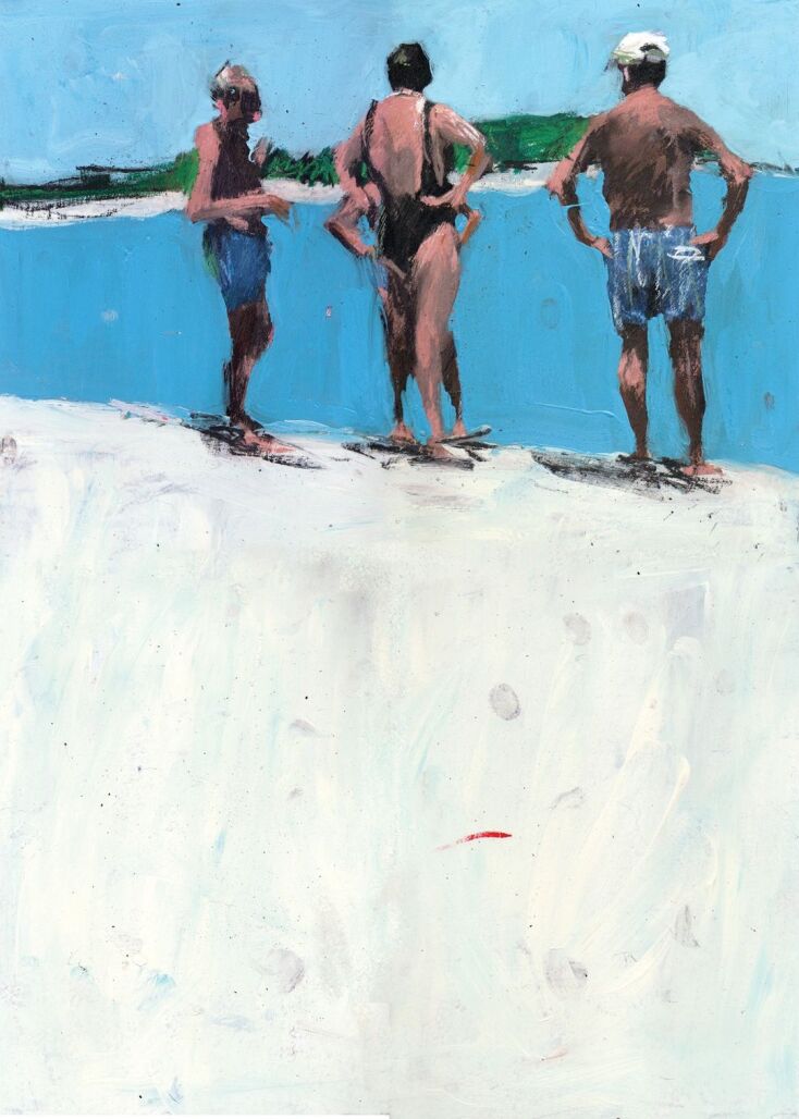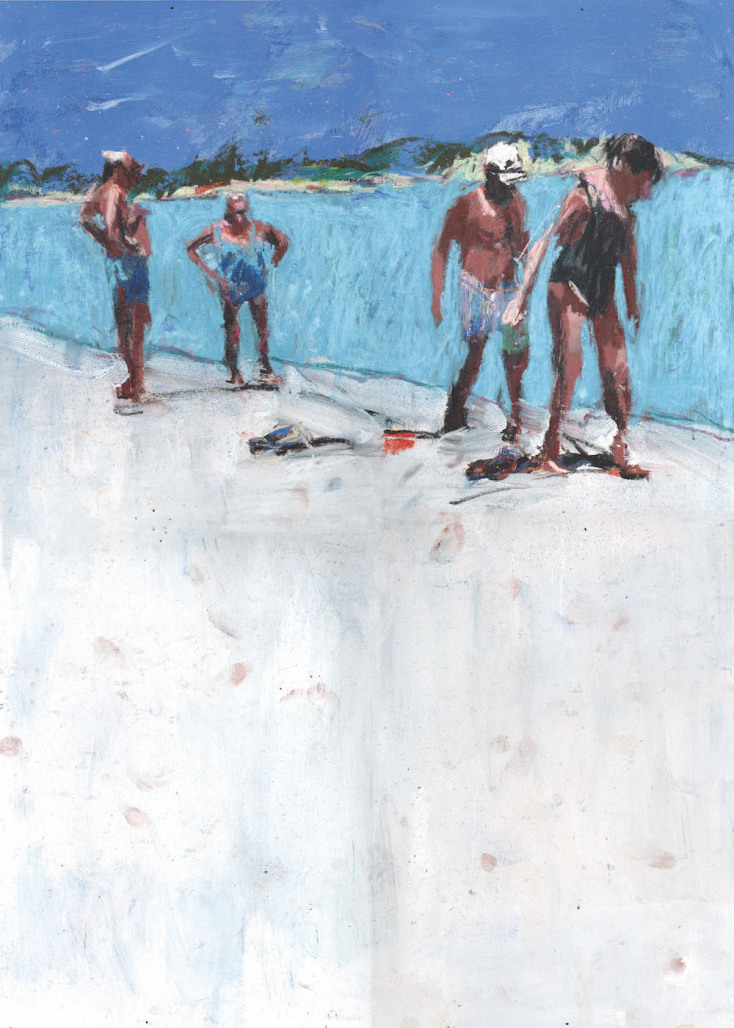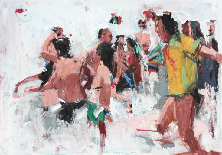 2) Η παραλία Καρύδι στη Βουρβουρού. Πολλά έργα μου με πλήθη - θάλασσα έχουν reference σε φωτογραφικό μου υλικό από τον συνωστισμό της συγκεκριμένης παραλίας.