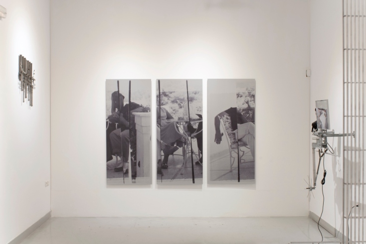 ΑΓ: Οι φωτογραφίες, στη δική μου περίπτωση, προέρχονται συνήθως από προσωπικό αρχείο, πλην λίγων εξαιρέσεων. Η χρήση τους διαμορφώνεται παράλληλα με την ένταξή τους στον χώρο, έτσι που ο διάλογός τους να είναι μοιρασμένος με κάποιο τρόπο ώστε να συγκρατεί αρχικές ταυτότητες αλλά να δημιουργεί νέα σύνολα. Με αυτόν τον τρόπο το ένα υλικό βρίσκει το άλλο και πολλές φορές μπορεί να έχει ξεκινήσει από κάτι που είναι μόνο η αφορμή, άσχετα αν θα παίζει κάποιον ρόλο μετά.