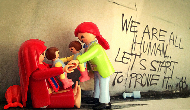 Ο Νίκος Παπαδόπουλος, ευρύτερα γνωστός ως «Plasticobilism», μιλάει για την προσφυγική κρίση, στήνοντας παιδικές φιγούρες σε βάρκες που βουλιάζουν και σε καταυλισμούς, αναπαριστά τα ματωμένα προσωπάκια από τις εμπόλεμες περιοχές και φωτογραφίζει μικροσκοπικούς ανθρώπους- παιχνίδια να έχουν μετατραπεί σε "αγγέλους" στον πάτο της θάλασσας.