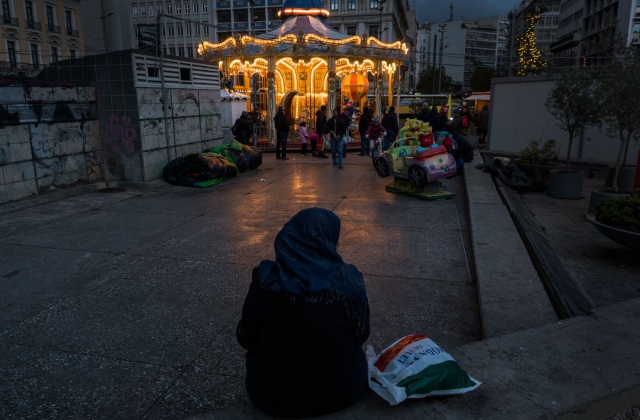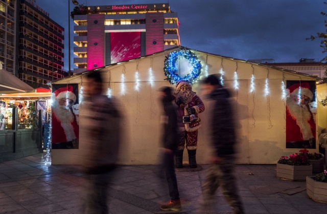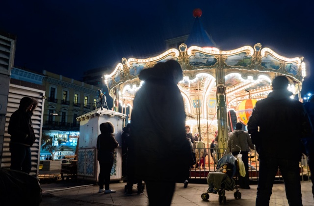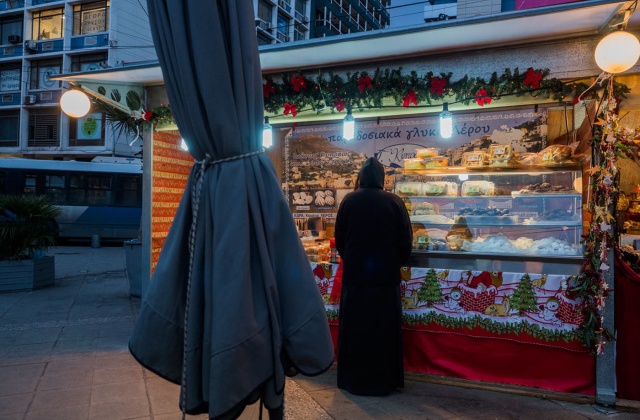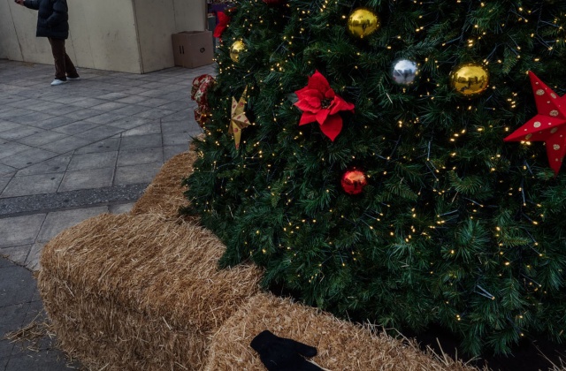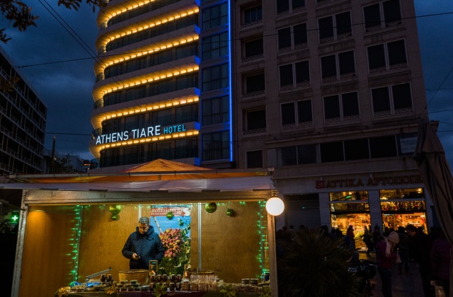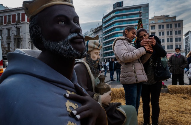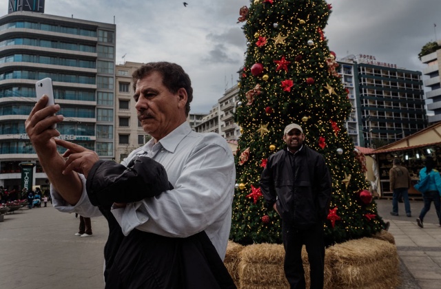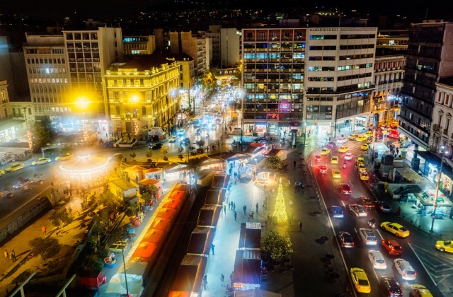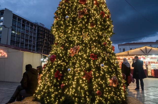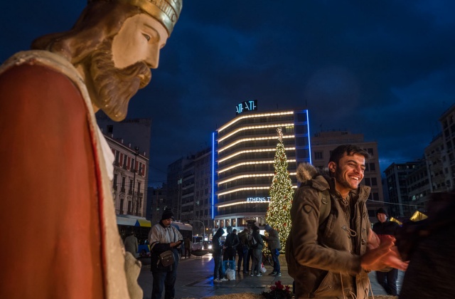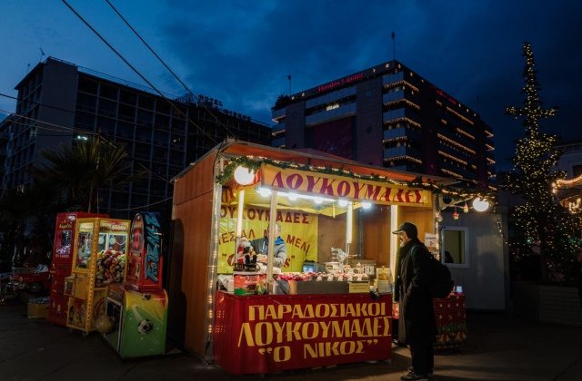 Ο Τάσος Βρεττός φωτογραφίζει στιγμιότυπα στη στολισμένη πλατεία