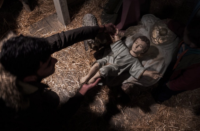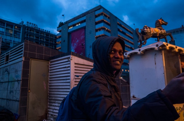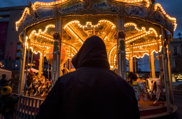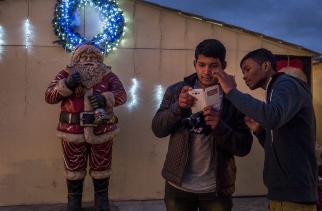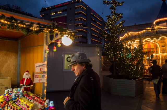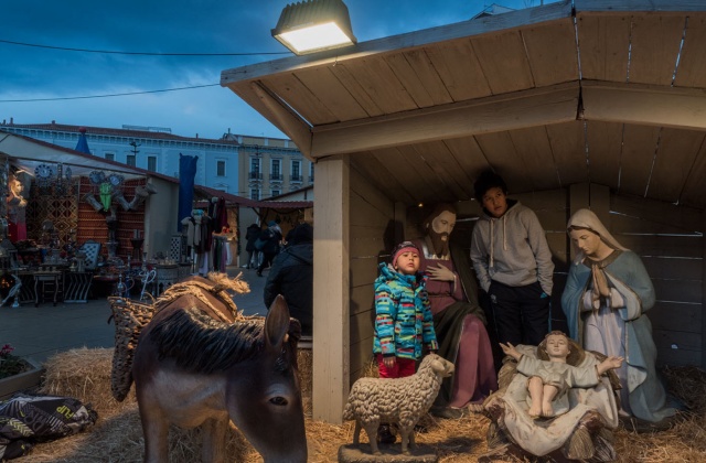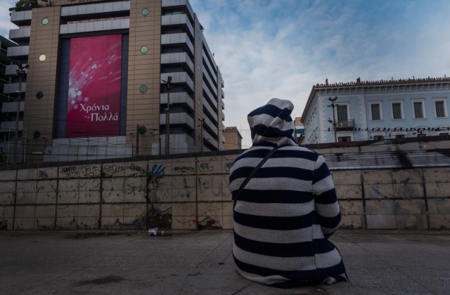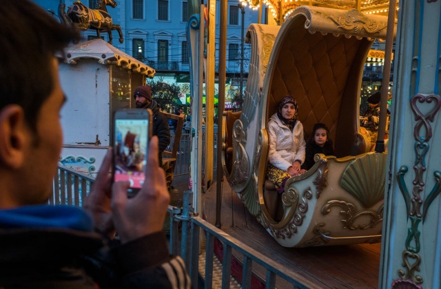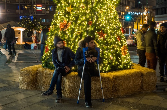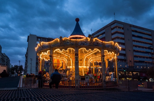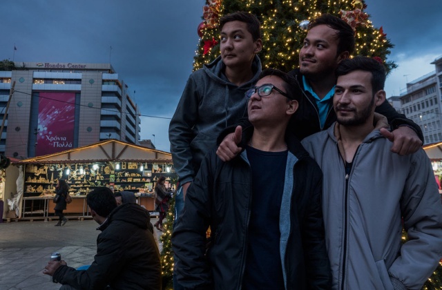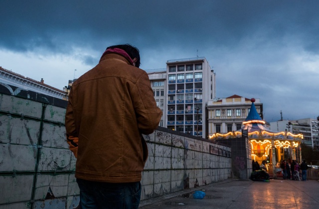 Ο Τάσος Βρεττός φωτογραφίζει στιγμιότυπα στη στολισμένη πλατεία