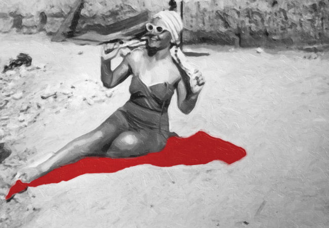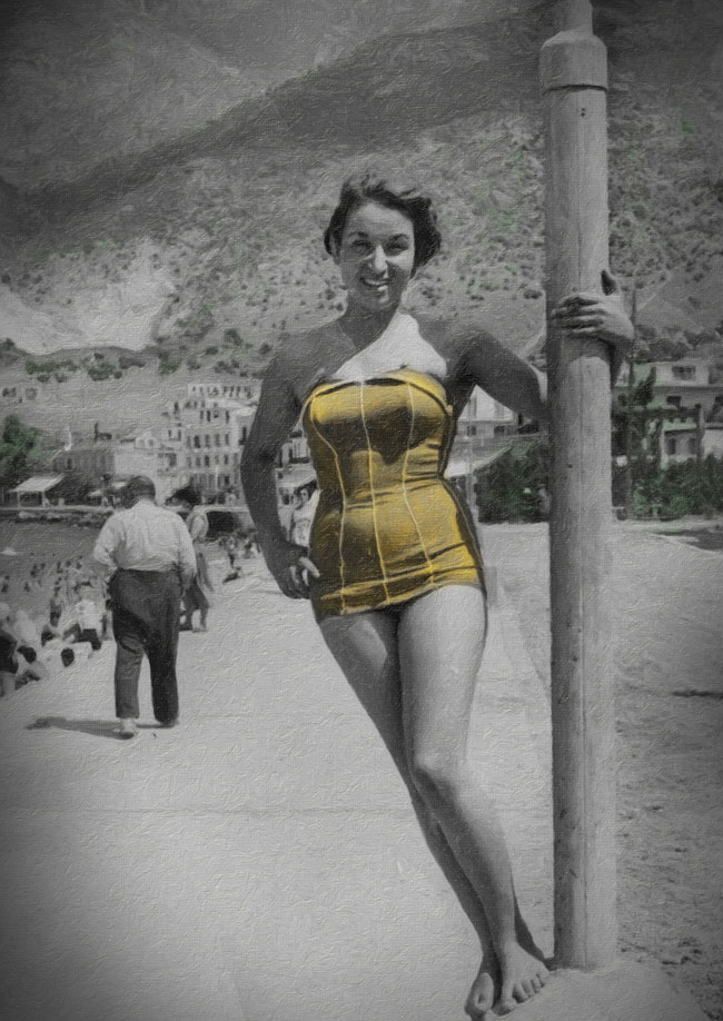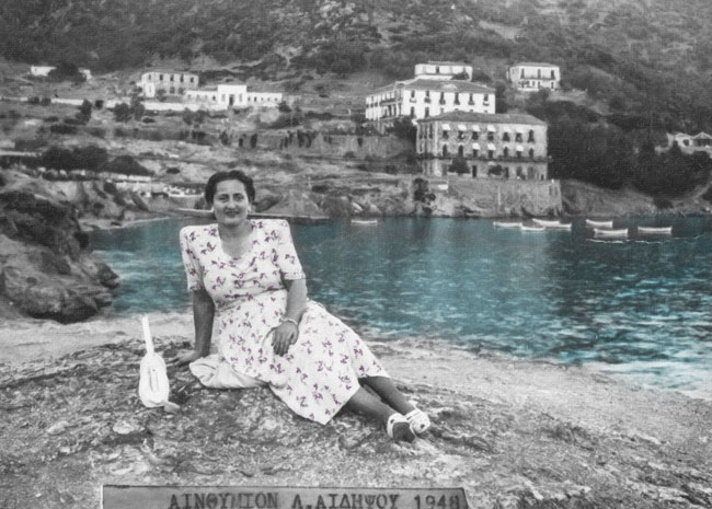 Θέλω να σας συστήσω τη θεία μου την Άννα, αδελφή της μητέρας μου (λουόμενη με κόκκινη πετσέτα). Αννούλα την έλεγα πάντοτε. Καταγωγή από τον Πόντο, ήρθε μαζί με την οικογένειά της –τρία αγόρια και τέσσερα κορίτσια– το 1922 μετά τη Μικρασιατική καταστροφή. Πρόσφυγες ξεριζωμένοι από τον τόπο τους, ξεκίνησαν από το μηδέν αφού άφησαν πίσω τους πλούτη, σπίτια και δουλειές. Όμως ήταν δημιουργικοί, ιδιοφυείς, επιχειρηματικά μυαλά, με βαθύ πολιτισμό και τελικά τα κατάφεραν. Η Αννούλα ήταν φεμινίστρια χωρίς να το ξέρει. Ανεξάρτητη, δεν σήκωνε μύγα στο σπαθί της. Επίμονη, ήθελε πάντα να γίνεται το δικό της. Ό,τι έβαζε στο μυαλό της το πετύχαινε. Τρεις μήνες μετά το γάμο της ξέσπασε ο πόλεμος. Ο αγαπημένος της Λεωνίδας δεν ξαναγύρισε. Εγώ την έζησα χρόνια αργότερα, όταν η λήθη είχε σκεπάσει την απώλεια. Ήταν μια γυναίκα ζωντανή και πάντα η ψυχή της παρέας. Δύσκολος χαρακτήρας αλλά αγαπητή από άντρες και γυναίκες. Δούλευε από μικρή γιατί δεν ήθελε να έχει εξάρτηση από κανέναν. Δεν άντεχε την καταπίεση και τον περιορισμό. Έφυγε απο το πατρικό και ζούσε μόνη της. Δυναμική, δραστήρια, είχε μέσα της τσαγανό. Της άρεσε το θέατρο και οι εκδρομές. Είχε γυρίσει όλη την Ελλάδα. Τα ταξίδια της στο εξωτερικό ήταν τακτικά και προγραμματισμένα. Δύο το χρόνο! Και από παντού είχε φωτογραφίες. Ντυμένη πάντα με γούστο. Το στιλ ήταν μέσα της. Το έβλεπες στα καπέλα που φορούσε, στην πόζα που έπαιρνε, στις τσάντες που κρατούσε. Η Αννούλα έφυγε απο τη ζωή, που τόσο αγαπούσε, ήρεμα. Το τελευταίο της βράδυ έδειχνε στη γυναίκα που τη φρόντιζε φωτογραφίες από τα ταξίδια της. Αυτά τα άλμπουμ κληρονόμησα. Για μένα είναι μια αμύθητη περιουσία.