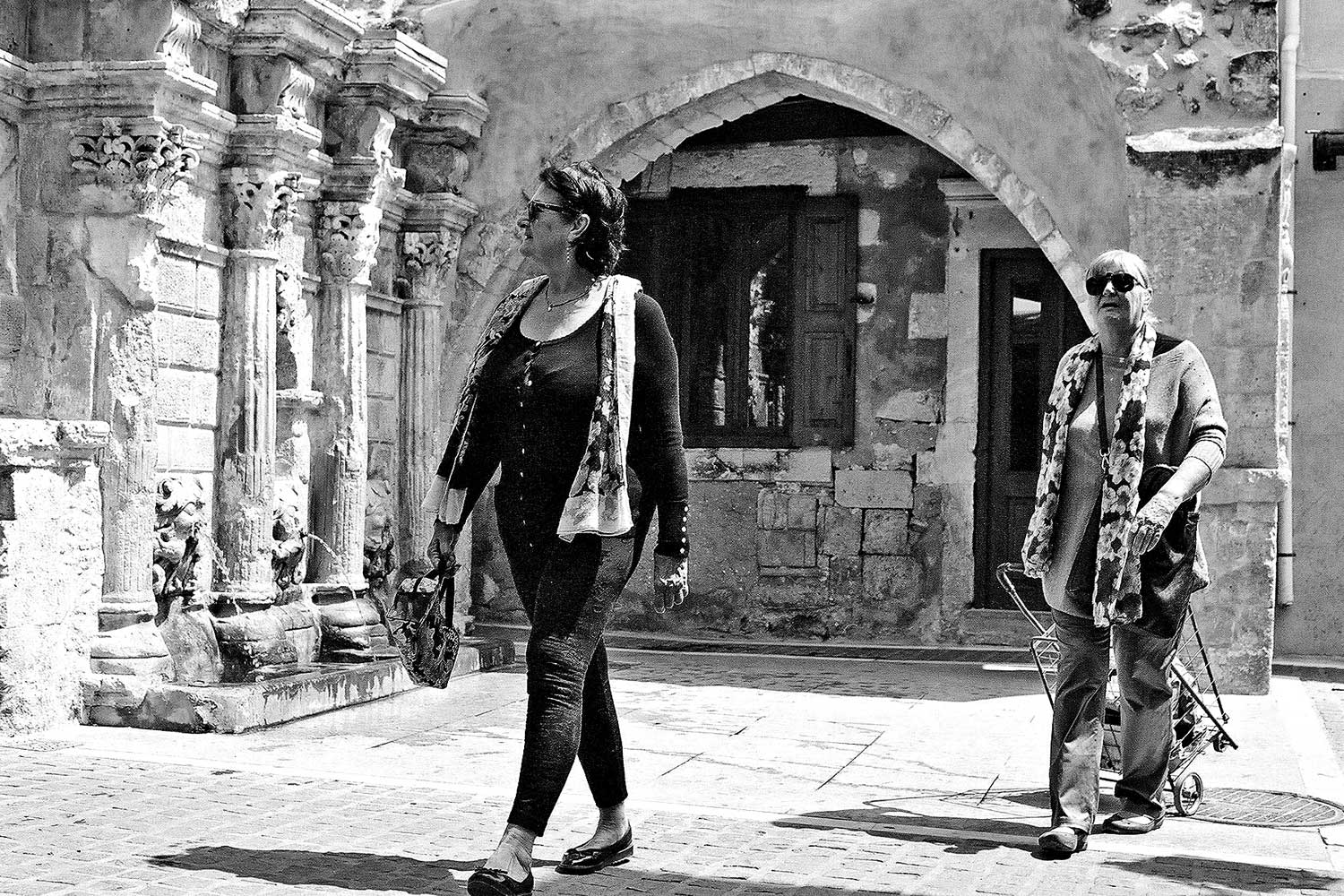 Στα σοκάκια της παλιάς πόλης του Ρεθύμνου παραδοσιακοί Kρητικοί, μαυροφορεμένες γιαγιάδες, παιδάκια που τρέχουν ανέμελα ή κάνουν ποδήλατο, κεφαλόσκαλα και μπαλκόνια με κατάφυτες γλάστρες σε κάνουν να νομίζεις ότι με κάποιο μαγικό τρόπο έχεις μεταφερθεί στα βάθη της 10ετίας του ’50. Την ίδια όμως στιγμή, οι παρέες από φοιτητές και (κυρίως) φοιτήτριες που τριγυρνούν και η μουσική από τα διάφορα μικρά καφέ και μπαράκια, που βρίσκονται ανάμεσα στα μεσαιωνικά κτίσματα σε επαναφέρει άμεσα στην εποχή μας. Ταυτόχρονα τουρίστες, όλων των ηλικιών και προελεύσεων, μπαινοβγαίνουν στα διάφορα boutique ξενοδοχεία και γεμίζουν τα καλόγουστα παραδοσιακά εστιατόρια, ενώ όσο προχωράει κάποιος προς την Κρήνη Ριμόντι και τις Μαυροκορδάτου, Παλαιολόγου, Αρκαδίου, σκοπεύοντας να φτάσει στο ενετικό λιμάνι ή την παραλία, έρχεται αντιμέτωπος με το απόλυτο αδιαχώρητο. Μαγαζιά με σουβενίρ, παγωτατζίδικα, σουβλατζίδικα, καφέ, εστιατόρια, fast-food, καταστήματα με όλων των ειδών τα ρούχα και κόσμος, πολύς κόσμος, πάρα πολύς κόσμος.