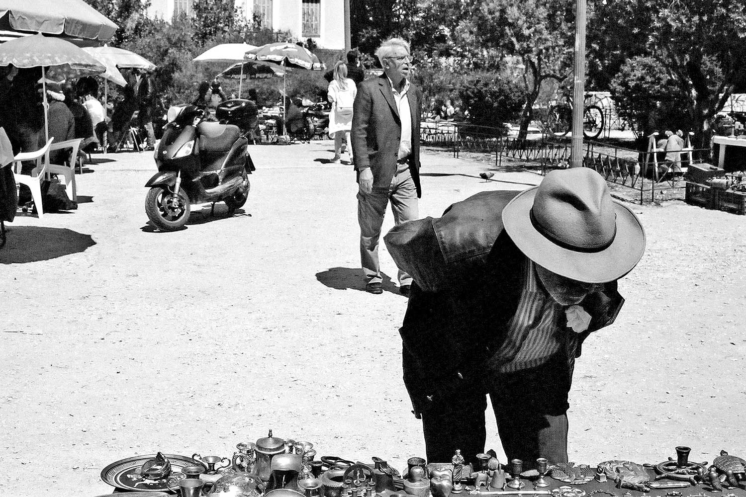 «Άδεια έχεις; Αποδείξεις κόβεις;» τον ρωτάω. Σαστίζει, ψιλομπερδεύεται, δεν το περίμενε. Αυτός, ο τόσο έξυπνος, ο τόσο πονηρός, πώς την πάτησε έτσι. Κάνει μία τεράστια προσπάθεια για να μου τη βγει. «Δεν έχει να κάνει, ρε! Με ποιο δικαίωμα βγάζεις φωτογραφία τα πράγματά μου. Πρέπει να με πληρώσεις!» λέει, φωνάζοντας και πουλώντας και τον σχετικό τσαμπουκά.