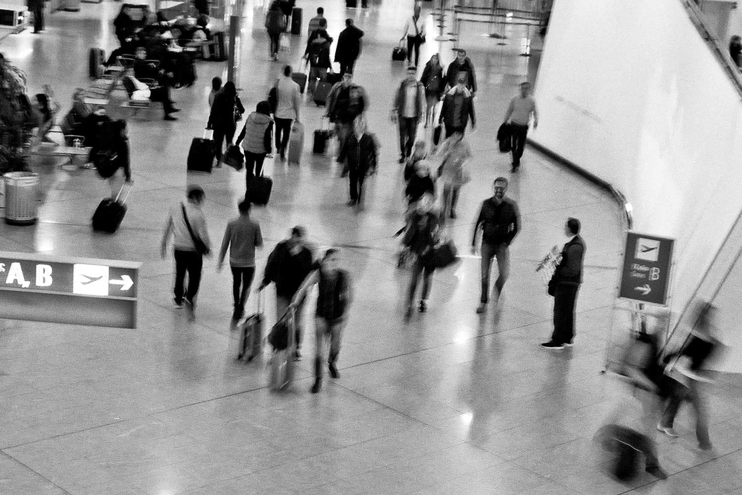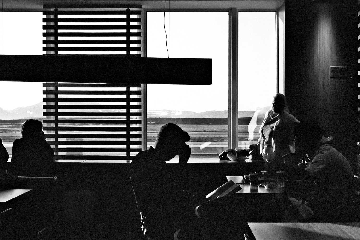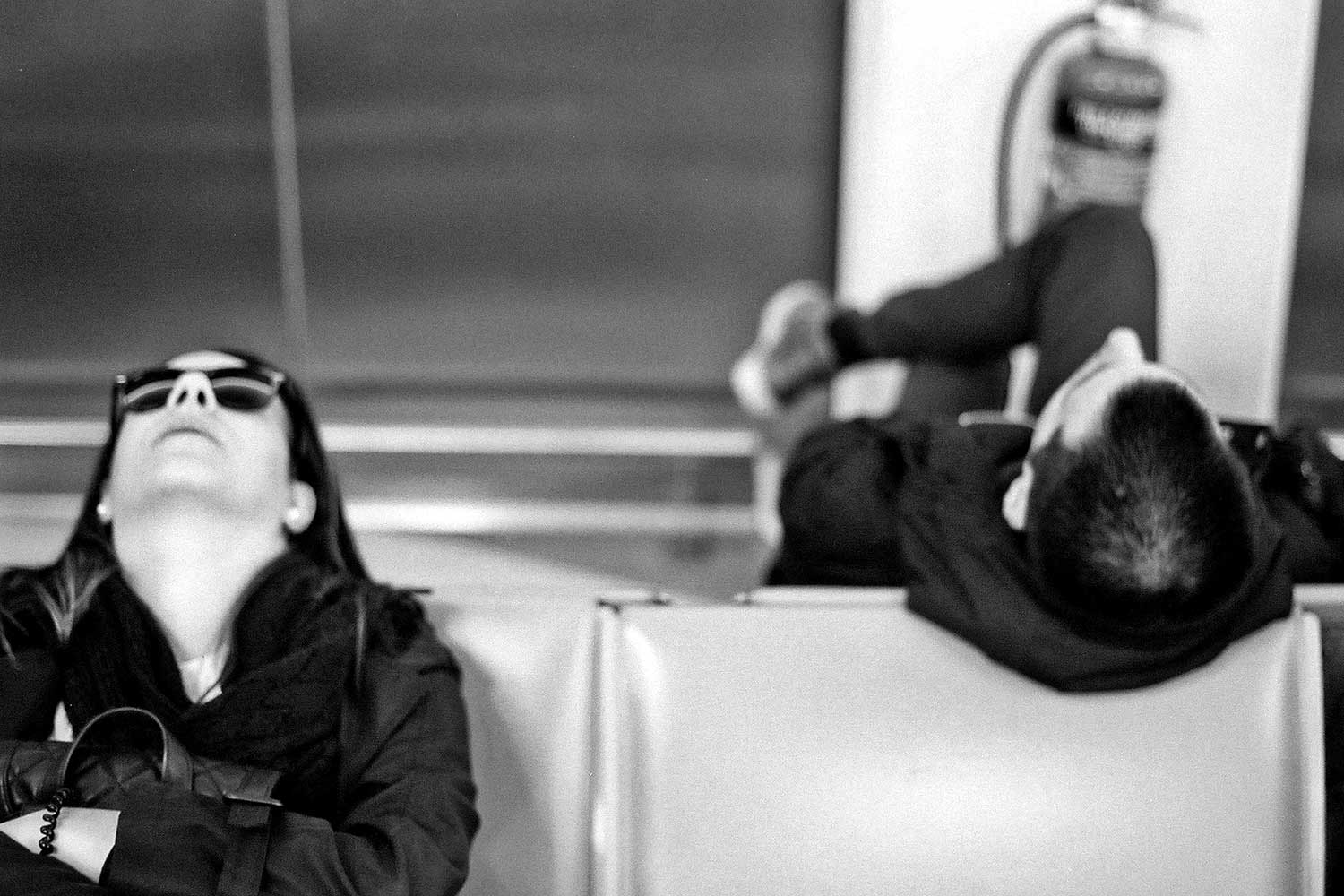 Οι συνθήκες δεν ήταν εύκολες εκείνο το πρωινό στο «Ελ. Βενιζέλος». Πολύ φως έξω, χαμηλός φωτισμός μέσα. Να μη σε πάρουν και χαμπάρι. Ο σκοπός διπλός. Να νικήσω την ανία και την πλήξη, κάτι που σίγουρα επετεύχθη, αλλά και να καταφέρω να μεταφέρω την ατμόσφαιρα που επικρατεί στον μικρόκοσμο ενός αεροδρομίου. Ενός ιδιαίτερου χώρου. Στον οποίο οι περισσότεροι ευρισκόμενοι είναι περαστικοί. Εκεί που ισχύουν αυστηροί κανόνες και πολλαπλοί περιορισμοί. Για όλους! Ανεξαρτήτως προέλευσης ή προορισμού. Σε τελική ανάλυση εκεί που όλοι αναγκάζονται οικειοθελώς να συμμορφωθούν. Χωρίς διαμαρτυρίες και αντιρρήσεις.