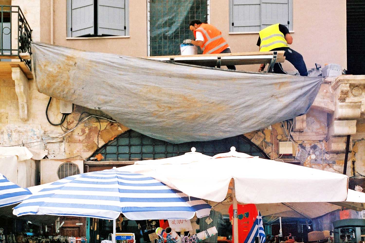 Βρίσκομαι κάπου στην αχανή παραλία του Πλατανέ στο Ρέθυμνο. Μπαράκι πάνω στην αμμουδιά, πέργκολα από φύλλα φοίνικα, ξαπλώστρες, ομπρέλες κόκα-κόλα, αιώρες, νεαρές Ρωσίδες μαμάδες με μοιραίο ύφος βγάζουν selfies την ώρα που κουνάνε το καρότσι με το μωρό, ταχύπλοα στη θάλασσα και πολύχρωμα para-glides στον ουρανό, παιδάκια παίζουν κάπου εκεί δίπλα σε μια υπέργεια πλαστική πισίνα μεγέθους μπανιέρας, μουσική υπόκρουση ντάπα-ντούπα, ο μπάρμαν πυκνό μούσι, στριφτό μουστάκι λυράρη και γεμάτος τατουάζ, ο σερβιτόρος μιλάει αγγλικά με βαριά κρητική προφορά. Και στο βάθος το κερασάκι στην τούρτα. Υπάλληλος από παρακείμενο ξενοδοχειάκι έχει πάρει μια μεγάλη παρέα από τουρίστες και τους έχει βάλει να χορεύουν συρτάκι στην παραλία. Δεν υπάρχει ηχοσύστημα, οπότε έχει αναλάβει αυτός τη μουσική επένδυση, τραγουδώντας… Εκείνοι χαζογελάνε ευτυχισμένοι!