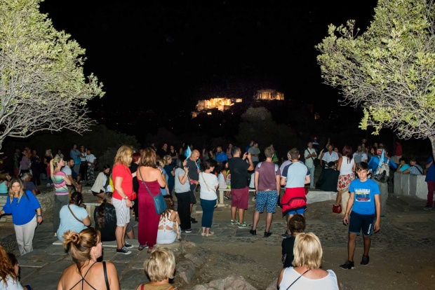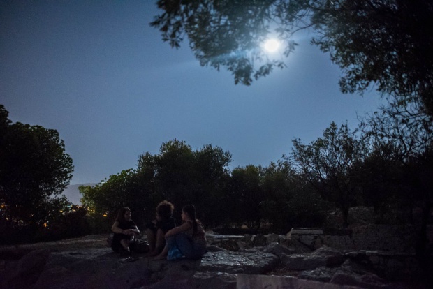 Όσες φορές κι αν δεις την πανσέληνο να κινείται απαλά στον βραδινό ουρανό, δεν πρόκειται να τη βαρεθείς. Το καλύτερο σημείο για μένα είναι στο μαρμάρινο πλάτωμα του Πικιώνη, στο λόφο του Φιλοπάππου. Η ανάβαση είναι σχετικά εύκολη και με λίγη προσοχή ανεβαίνει κανείς μόνο με το φεγγαρένιο φως. Υπήρχε λίγος κόσμος. Αλλά αρκετή οργάνωση. Ποτά σε τσάντες με ποτηράκια, ανέβαιναν κουδουνιστά τα δρομάκια. Άλλοι είχαν και φαγητό. Πιο δίπλα, ένα άγουρο ζευγαράκι, έδινε ρουφηχτά φιλιά για κάμποση ώρα. Ξένοι τουρίστες κοιτούσαν με ρυθμό υαλοκαθαριστήρα, μια τη πανσέληνο, μία την ακρόπολη, μια την πανσέληνο, μία την ακρόπολη. Μανιφίκ, γκόρτζιους, μα κε μπέλο. Από το Ηρώδειο άκουγες αχνά tango και μετά το ξέσπασμα και τα χειροκροτήματα. Το φεγγάρι ανέβαινε και δυνάμωνε το φως του. Οι παρέες απολάμβαναν ευχάριστα. Ξαφνικά ένα μεγάλο πλήθος ανθρώπων ανέβηκε με σακίδια στις πλάτες. Μια κυρία ξεκίνησε να τραγουδάει «χάρτινο το φεγγαράκι» και μετά το «Αθήνα» του Χατζιδάκι. Μετά άλλη μία, άρχησε να απαγγέλει ένα αρχαίο ποιήμα. Λίγο άνευρα, κεφάτα όμως. Έπειτα με ένα σύνθημα συνέχισαν την ανηφόρα για το μνημείο. Φυσιολατρικός περίπατος είπαν. Είχε πλάκα η φάση. Δεν ενόχλησαν. Το βράδυ συνέχισε όμορφα. Αν ξεκουνηθείς, η Αθήνα προσφέρει απλόχερα.
