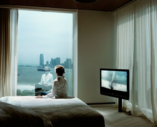 Ο Philip-Lorca DiCorcia –μα τι όνομα– αποτελεί μια περίπτωση φωτογράφου όπου η ζωγραφική και ο κινηματογράφος αποτελούν τις πιο έντονες επιρροές του. Το αποτέλεσμα γίνεται πολύ ενδιαφέρον γιατί καταφέρνει να τα συνδέσει μαεστρικά. Μαγνητίζει το βλέμμα με την αδιανόητη ποιότητα της φωτογραφίας του και το παραισθητικό του χρώμα, ενώ δίνει την αίσθηση ενός παγωμένου καρέ κάποιας ταινίας του Wong Kar Wai ή ενός πίνακα του Hoper. Ο θεατής των εικόνων του βρίσκεται σε κάποιο είδος σύγχυσης. Βρίσκεται σε έναν κόσμο πραγματικό και φαντασιακό ταυτόχρονα. Αυτό το πετυχαίνει με το απόλυτο στήσιμο ή, πιο σωστά, με τη σκηνοθεσία των φωτογραφιών του. Όλα είναι υπό απόλυτο έλεγχο: φως, μοντέλο, τοποθεσία, έπιπλα, ρούχα, τα πάντα. Σε κάποιες μένει μια αίσθηση φωτογραφίας μόδας ή και διαφημιστικής φωτογραφίας, χωρίς όμως να είσαι καθόλου σίγουρος ότι είναι όντως. Αυτό που έχει καταφέρει ο Dicorcia είναι να συνδυάσει τα ασυνδύαστα, την τεχνική του απόλυτα δομημένου πλάνου ενός στούντιο στο δρόμο και παράλληλα την ατμόσφαιρα του δρόμου κλεισμένη μέσα στο στούντιο.