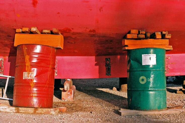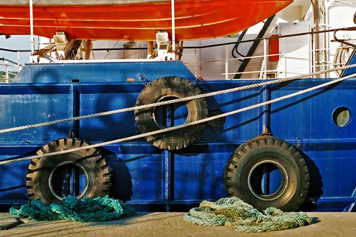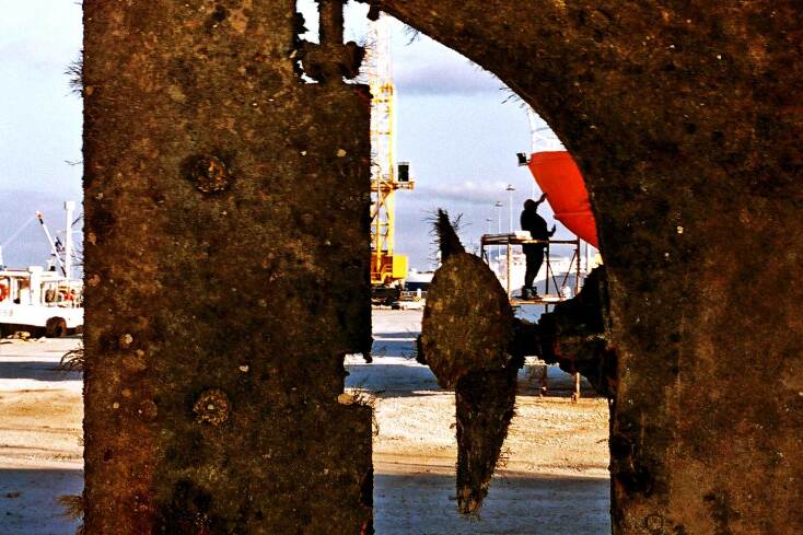 Όμως τα αραγμένα σκάφη έχουν άλλη χάρη. Είτε είναι ενεργά, είτε παρατημένα. Ακόμα και όταν είναι στη στεριά για επισκευή ή απόσυρση. Τα χρώματα, τα παλιά βαρέλια, οι κάβοι, οι σωλήνες, οι γερανοί, οι αλυσίδες, οι άγκυρες, τα παλιά λάστιχα φορτηγών. Η μυρωδιά από αλμύρα και σκουριά...