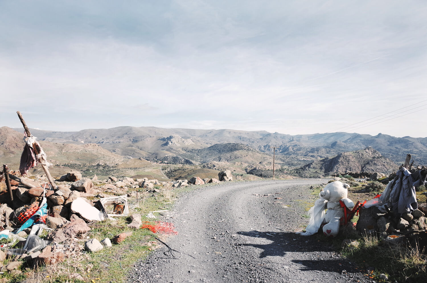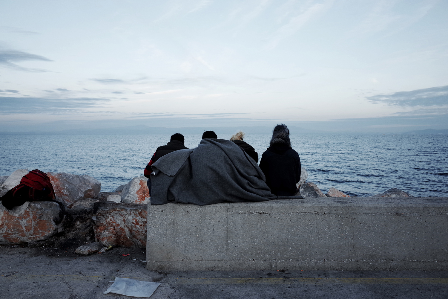Μυτιλήνη, Σκάλα Συκαμιάς,Νοέμβριος 2015, στην κορύφωση της προσφυγικής κρίσης σωσίβια πεταμένα παντού στην ακτή, σε έναν βράχο σχηματίζουν έναν άτυπο τύμβο.