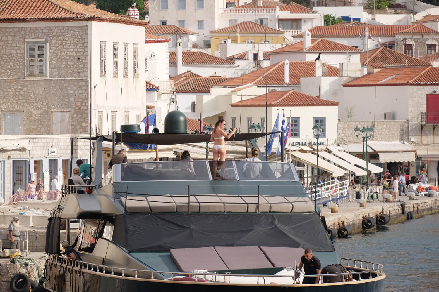Σπέτσες, Καθαρά Δευτέρα 2019, η άνοιξη φαίνεται να φτάνει, η Πλατεία Μπουμπουλίνας γεμάτη κόσμο που πετάει χαρταετούς, μία ζωντανή καρτ ποστάλ.