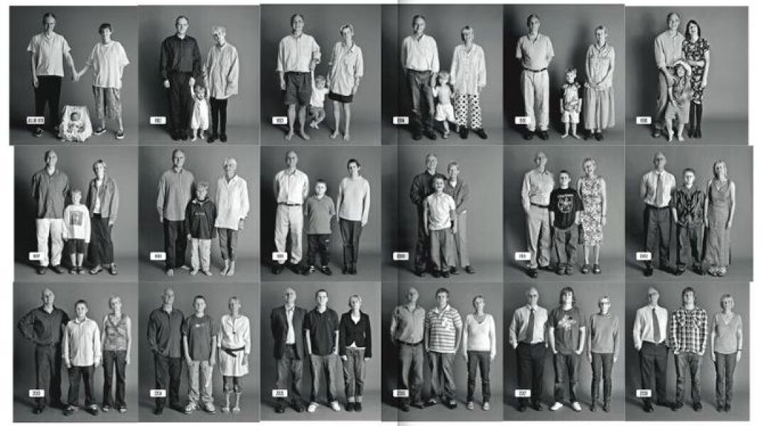 Το ζευγάρι συμφώνησε και όταν ήρθε ο πελαργός το «πείραμα» επαναλαμβανόταν με συνέπεια κάθε χρόνο. Στην ασπρόμαυρη σειρά «The Family» μπορεί κανείς να χαζέψει τη δύναμη του χρόνου, τις εναλλασσόμενες στιλιστικές τάσεις, τη γλώσσα του ανθρώπινου σώματος. Σήμερα, εν έτει 2014, το παιχνίδι συνεχίζεται…