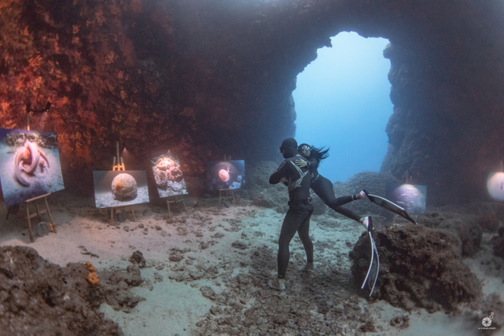 «Αυτό που ήθελα να μεταφέρω στον επισκέπτη της “Underwater Gallery” είναι η εμπειρία σαν να μπαίνει κάποιος σε μία κανονική γκαλερί. Είσοδος, φώτα, καβαλέτα. Ακόμα και η ίδια η τοποθέτηση των έργων έγινε με ελεύθερη κατάδυση. Τα έργα ήθελα να τα “δέσω” με το φυσικό περιβάλλον, πέτρες μπροστά από φωτογραφίες με πέτρες, χρώματα με χρώματα, ακόμα και ψάρια πέρναγαν μπροστά από έργα με ψάρια και τα έχουμε αποτυπώσει και βιώσει…» μας λέει ο Στέφανος Κόντος.