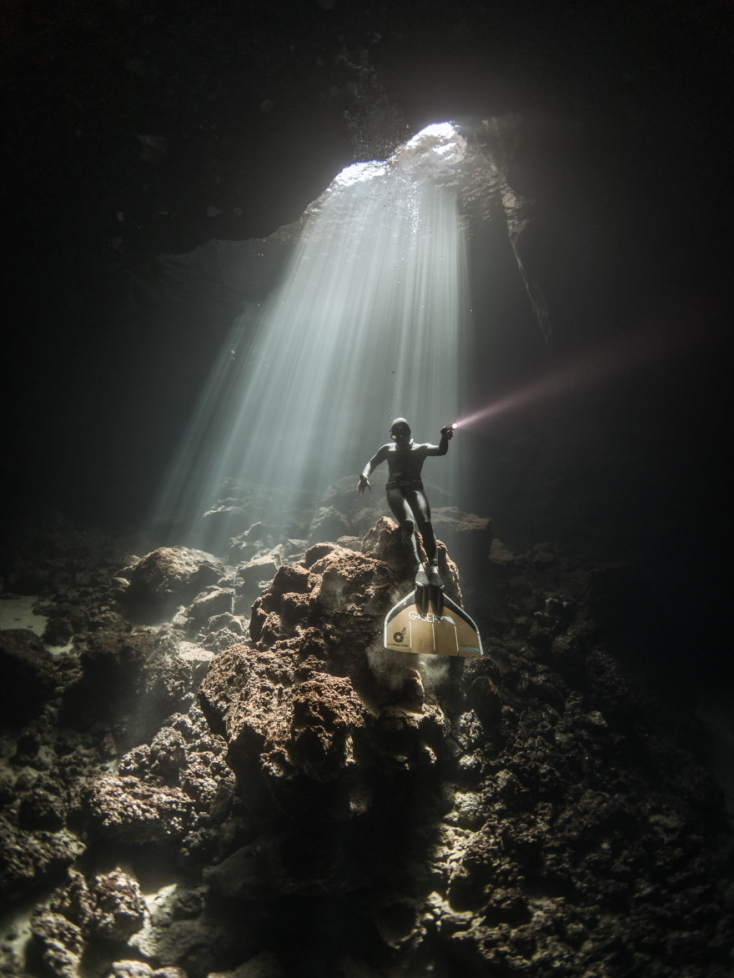 Το “Underworld Project” πήγε φέτος και στα Χανιά της Κρήτης, στο υποθαλάσσιο “Σπήλαιο των Ελεφάντων”, με τη βοήθεια του έμπειρου ντόπιου εκπαιδευτή Νικόλα Γιαννουλάκη και της δικής του ομάδας. Εκεί μπορούμε να θαυμάσουμε τον εντυπωσιακό κλειστό θόλο, τους σταλακτίτες και σταλαγμίτες και τα χρώματά τους, με την είσοδό μας στην κύρια αίθουσα να γίνεται υποθαλάσσια και να απαιτείται κατάδυση πολλών μέτρων μέσα σε ένα υποβρύχιο τούνελ, με κάποιους θύλακες αέρα κατά τη διαδρομή. Όλα αυτά “με μία ανάσα”, χωρίς κάποιο αναπνευστικό εξοπλισμό. Εκεί έχουν ανακαλυφθεί οστά ελέφαντα από την παλαιολιθική εποχή» συμπληρώνει ο Στέφανος Κόντος, τονίζοντας πάλι πόσο ριψοκίνδυνη είναι μία τέτοια κατάδυση.