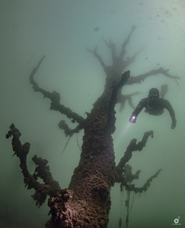 Βουτήξαμε με το «Underworld Project» στη λίμνη Τσιβλού, στον Χελμό στη βόρεια Πελοπόννησο, μία φυσική λίμνη σε υψόμετρο κοντά στα 800 μέτρα και γύρω στα 80 μέτρα βάθος. Πρόκειται για μία φυσική λίμνη, αποτέλεσμα μίας κατολίσθησης που συνέβη πριν 100 χρόνια, καταπλακώνοντας ένα χωριό και ένα αλπικό δάσος. Το όλο σκηνικό και η αίσθηση γύρω από τη λίμνη είναι καθαρά αλπική. Κάναμε ελεύθερη κατάδυση στη λίμνη, με την ορατότητα να είναι σχεδόν μηδενική λόγω των ιζημάτων και των στρώσεων, ενώ η θερμοκρασία ήταν πολύ χαμηλή. Η όλη ατμόσφαιρα ήταν άκρως υποβλητική και σκοτεινή, με τεράστια βυθισμένα δέντρα να ξεπροβάλλουν δίπλα μας».