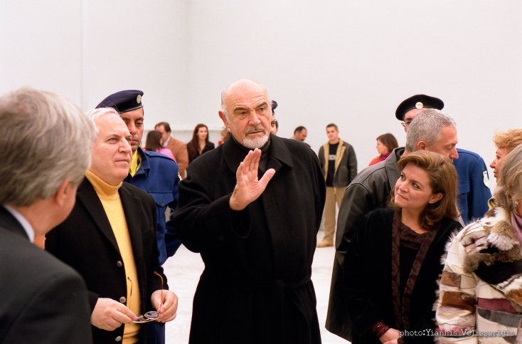 Την ημέρα των εγκαινίων, ο εκθεσιακός χώρος ήταν γεμάτος με εικαστικά έργα της Μισέλ Ροκμπρίν. Μια αίθουσα με έργα τέχνης, περίτεχνα στημένα, ομολογουμένως. Κάθισα σε μια γωνιά και περίμενα υπομονετικά να έρθει ο Σον Κόνερι. Όπως μου είπαν, είχαν εφεδρεία τελικά κι έναν άλλο φωτογράφο, για παν ενδεχόμενο, αλλά στο δελτίο τύπου τελικά «έπαιξαν» οι δικές μου φωτογραφίες.