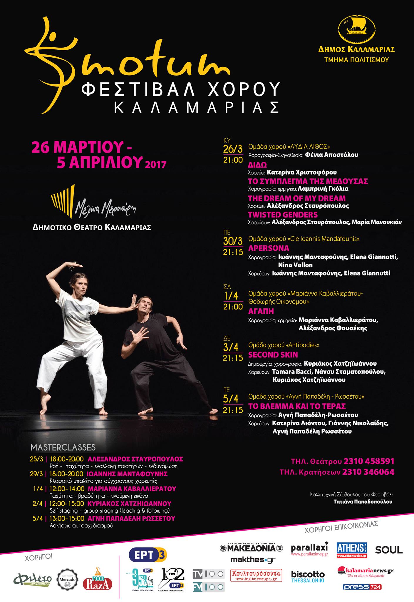 Tιμές εισιτηρίων: Kανονικό 10 € &Μαθητικό- Φοιτητικό 8 € Κρατήσεις θέσεων: 2310 346064.