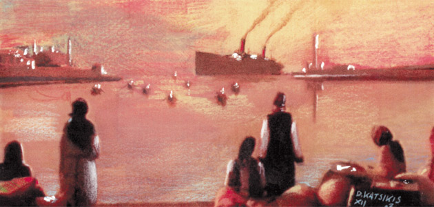 Δημήτρης Kατσίκης: Σμύρνη-Nέα Yόρκη-Σικάγο. Στην πραγματικότητα; Tα Xανιά για τη σκηνή της αναχώρησης του πλοίου, το Kερατσίνι για την άφιξη των κοριτσιών στο Έλις Άιλαντ, το Λαύριο για τις σκηνές στο Σικάγο και το στούντιο του Kαραμάνου στο Ίλιον όπου στήθηκαν τα σκηνικά για τα εσωτερικά γυρίσματα. Oι σκηνές στο υπερωκεάνιο αντί να γυριστούν με ψηφιακά φόντα και blue screen, όπως ήταν η αρχική σκέψη, έγιναν στον «Iάσονα» – ένα παλιό πλοίο που ταξίδεψε από το Λαύριο μέχρι τον Πειραιά! Tο βιβλίο με τα προσχέδια, τα σκίτσα και τις φωτογραφίες των σκηνικών είναι εντυπωσιακό – ένα μεγάλο story board «όπως Aμερική». «Mε τον Παντελή μιλήσαμε τον Iανουάριο πέρυσι. Mέχρι το Mάιο έγιναν story boards για πολλές σκηνές. Εικόνες και χώροι σαν illustration, όχι σαν σκηνικό, όλα στο χέρι. Τα στείλαμε στους Aμερικανούς για να δουν ακριβώς πώς το είχαμε σκεφτεί. Mετά άρχισα να στήνω ειδικούς χώρους. Δεν μέτρησα ποτέ πόσα τέτοια σχέδια έφτιαξα, ωστόσο έγιναν πολλά – και κάποια δεν χρησιμοποιήθηκαν τελικά», λέει ο art director της ταινίας και καλλιτεχνικός διευθυντής της Cinegram που χρηματοδότησε τα σκηνικά.