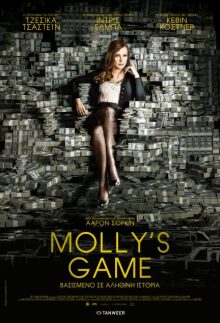 Γνωστός κυρίως ως γραφιάς - τα σενάρια του έχουν αποσπάσει ένα Όσκαρ («Social Network»)- ο θεατρικός συγγραφέας και σεναριογράφος Άαρον Σόρκιν στην πρώτη του σκηνοθεσία δείχνει ότι κατέχει τα μυστικά της κινηματογραφικής τέχνης. Άλλωστε η θητεία του σε κορυφαίους δημιουργούς (Φίντσερ, Ράινερ, Μίλερ, Μπόιλ) του πρόσφερε το know how στο πως θα αφηγηθεί την ιστορία του με κινηματογραφικούς όρους, όπως μαρτυρά και η δουλειά που έχει κάνει στο «Molly’s game», αν και η επιλογή του θέματος με την παράλληλη σκιαγράφηση της ηρωίδας του θυμίζουν κυρίως...Μάρτιν Σκορσέζε! Βασιζόμενος στην πραγματική ιστορία της Μόλι Μπλουμ που έγινε η διοργανώτρια και επόπτρια υψηλών - από άποψης συμμετοχής παικτών αλλά και χρήματος που διακινούνταν στην πράσινη τσόχα- παιχνιδιών πόκερ, ο 57χρονος Σόρκιν διηγείται μια σφιχτοδεμένη περιπέτεια με εσωτερικούς δαίμονες, σαρδόνιο χιούμορ και απρόσμενα ξεσπάσματα βίας. Ο Σόρκιν ξεκινά όχι μόνο εντυπωσιακά αλλά και με τη σοβαρότητα ενός ώριμου σκηνοθέτη που δουλεύει μεθοδικά την ταινία του οδηγώντας την στο λυτρωτικό φινάλε. Μπορεί σε μια πρώτη ανάγνωση η ιστορία του να δείχνει περιορισμένου ενδιαφέροντος (παρτίδες πόκερ μεταξύ παικτών από διαφορετικές κοινωνικές κατηγορίες) αλλά πίσω από τις προσεκτικά επιλεγμένες λέξεις κρύβεται το κυνήγι της επιτυχίας και του χρήματος. Ένα κυνήγι που θυμίζει δονκιχωτικές αναζητήσεις και κόντρες με φανταστικούς ανεμόμυλους, έχοντας για πρωταγωνιστές αντιφατικούς αλλά γοητευτικούς χαρακτήρες που υπονομεύουν τους ίδιους τους εαυτούς τους και βάζοντας την ψυχανάλυση (ο Κέβιν Κόστνερ στο ρόλο του ψυχαναλυτή πατέρα της ηρωίδος κουμπώνει ιδανικά όλο το συμβολικό βάρος της δραματουργίας με την ολιγόλεπτη εμφάνιση του λίγο πριν από το φινάλε) σε περίοπτη θέση κριτή- δικαστή που παρατηρεί την πλοκή πριν ανακοινώσει την τελική του απόφαση. Όμως πριν και πάνω από όλα, το παιχνίδι αυτό ανήκει ολοκληρωτικά στη Μόλι Μπλουμ της Τζέσικα Τσάστεϊν. Η ικανότατη αμερικανίδα ηθοποιός συνθέτει με ευφυία, ήρεμη δύναμη και υποδόριο χιούμορ ένα θαυμάσιο γυναικείο πορτρέτο που προτάθηκε για Χρυσή Σφαίρα.