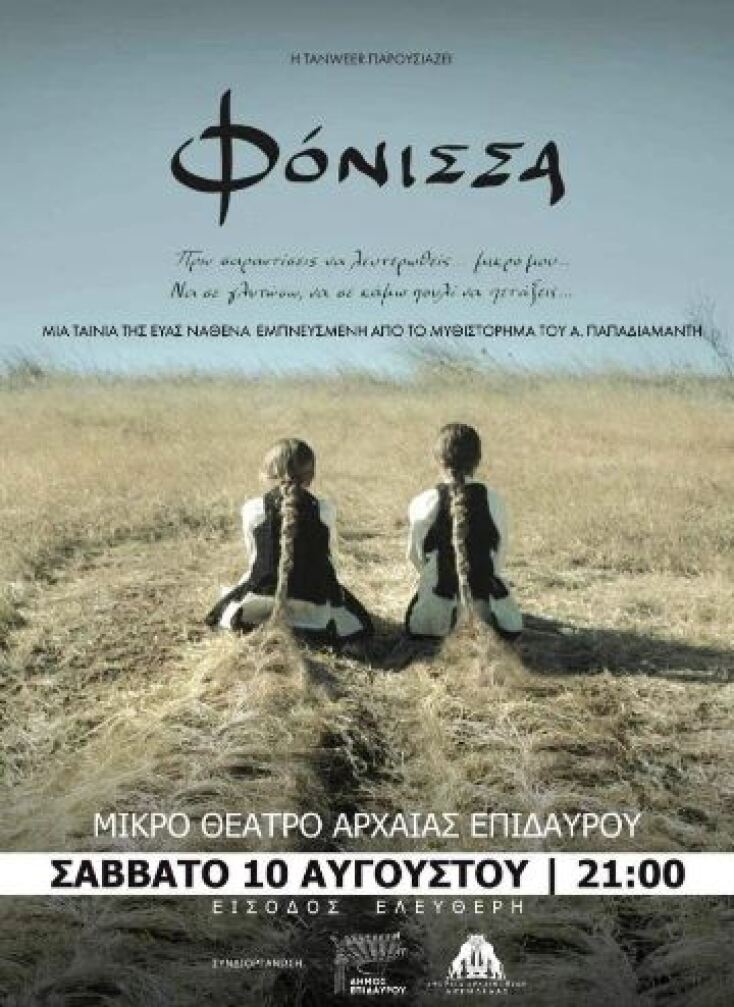 Μια εξαιρετική ευκαιρία θα έχουν οι επισκέπτες της Επιδαύρου να απολαύσουν την πολυβραβευμένη ταινία της Εύας Νάθενα «Φόνισσα» το προσεχές Σάββατο 10 Αυγούστου. Έπειτα από συμφωνία του Δήμου Επιδαύρου με την Εφορία Αρχαιοτήτων του υπουργείου Πολιτισμού, η ταινία παραγωγής της Τanweer, θα προβληθεί στο Μικρό Θέατρο της Αρχαίας Επιδαύρου με ελεύθερη είσοδο.