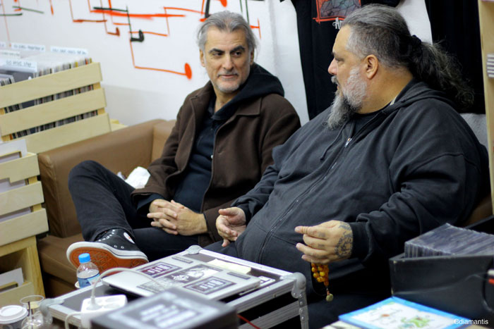 Φ.Π.: «Έχουμε κοινά βιώματα εμείς. Μεγαλώσαμε με ίδιες εικόνες. Σε διαφορετικές γειτονιές, αλλά αντίστοιχες γειτονιές και την ίδια εποχή. Ο Μιχάλης διάλεξε το δρόμο αυτό της low bap κι εμείς διαλέξαμε έναν άλλο δρόμο που ήταν μία μίξη από όλα αυτά που είχαμε στο κεφάλι μας. Ήταν ροκ, φυσικά. Με αυτά ξεκινήσαμε, αυτά ακούγαμε. Λαϊκή, γιατί είχαμε και τον κυρ Φώτη με το μεγάφωνο. Κάθε μέρα ακούγαμε Καζαντζίδη, Ζαγοραίο όλο το ρεπερτόριο… και παραδοσιακή που εγώ και όλοι μας δηλαδή, έχουμε μια ιδιαίτερη αγάπη, εγώ στα παραδοσιακά και κυρίως στα ηπειρώτικα έχω μεγάλη αγάπη. Όταν ακούω ηπειρώτικη μουσική από αυτούς που ξέρουνε, μου σηκώνεται η τρίχα δε μπορώ να κινηθώ. Εμείς κάναμε αυτή τη μίξη, λοιπόν. Τα παιδιά κάνανε αυτή την καινούρια σκηνή της low bap. Από τότε που τη βγάλανε, εγώ τον θεωρούσα και τον θεωρώ έναν από τους μεγαλύτερους ποιητές αυτής της γενιάς – βέβαια, αυτό το λέω, όταν φεύγει από τη σκηνή. Τα καλά λόγια είναι σημαντικότερο να λέγονται και πίσω από την πλάτη του άλλου. Είναι αυτό που έλεγα πάντα. Έχω μεγάλη εκτίμηση στα λόγια που γράφει. Και το κάναμε με διαφορετικούς τρόπους, αλλά μεταφέραμε, και σε εμάς αποδείχθηκε σε αυτή την παράσταση, το ότι η μουσική ενώνει. Η μουσική είναι μία. Οι δογματισμοί, οι παρωπίδες, ακόμα και από αυτούς με άποψη, συντελούν στη δημιουργία σούπερ μάρκετ. Στο να βάλεις ταμπελίτσες στο σούπερ μάρκετ για να πουλάει πιο εύκολα. Η μουσική είναι μία. Και αυτό το είδαμε και στην παράσταση. Τις κοινές ρίζες, τα κοινά βιώματα. Ο ένας συμπληρώνει τον άλλο. Εγώ θα ήθελα να είμαι κιθαρίστας σε μπάντα low bap.»