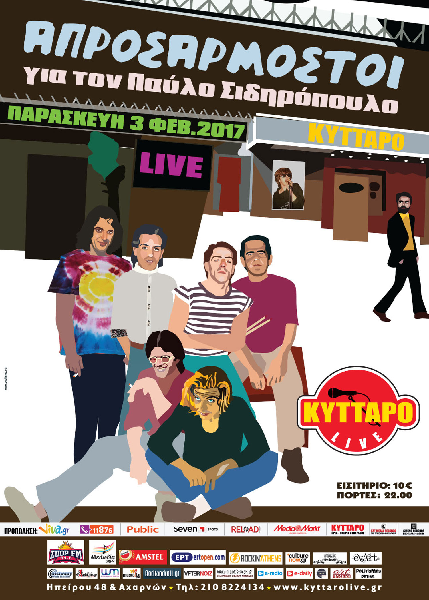 Ιδανικό ξεκίνημα την Παρασκευή 3 Φεβρουαρίου με τη γιορτή της σκηνής για τον Παύλο. Οι Απροσάρμοστοι τιμούν την παρακαταθήκη του αλησμόνητου ρόκερ Παύλου Σιδηρόπουλου ζωντανά στη σκηνή σε ένα αυθεντικό μουσικό αφιέρωμα. Με τα εναπομείναντα μέλη της «συμμορίας» Κυριάκο Δαρίβα (τύμπανα), Οδυσσέα Γαλανάκη (κιθάρα), Αλέκο Αράπη (μπάσο) που μαζί με τον Βασίλη Πετρίδη, τον Λουκά Γκέκα και φυσικά τον πρίγκιπα της ροκ σημάδεψαν την ιστορία της εγχώριας σκηνής. «Άντε και καλή τύχη μάγκες» (22.00/€10. Προπώληση: Κύτταρο, Eat Metal Records: Σπ. Τρικούπη 45, Εξάρχεια, 2130378553, Sirens Records: Νικηταρά 14 Αθήνα, 2103822304, viva.gr, Public, Reload Stores, Seven Spot, 11876)