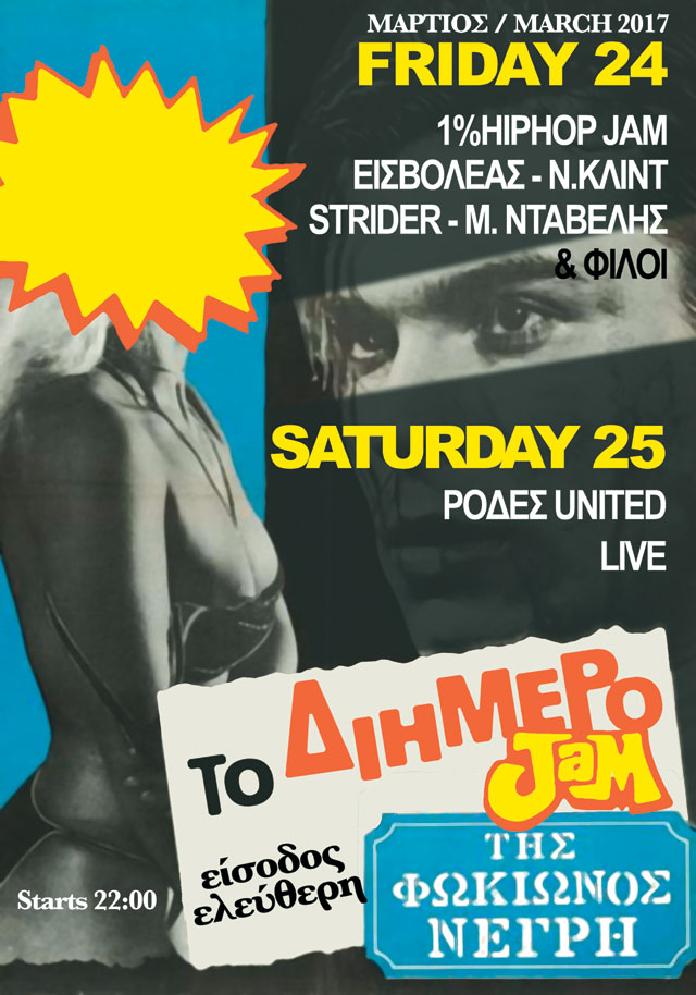 Η μουσική ζωντανεύει την πόλη. Για δύο μέρες μουσικοί, DJs και MCs θα τζαμάρουν στο νέο cafe bar Ορφέας στο νούμερο 25 της Φωκίωνος Νέγρη. O πεζόδρομος θα ζωντανέψει την Παρασκευή 24 Μαρτίου με τις ρίμες του Εισβολέα, έναν από τους πιο γνωστούς ράπερ της εγχώριας hip hop σκηνής, τον hip hop παραγωγό Κώστα Φόρτσα aka Strider, τον Μάριο Νταβέλη από το reggae dub σχήμα των Fundracar, τον Νικήτα Κλιντ και πολλούς φίλους. Οι μουσικοί θα αυτοσχεδιάσουν live μαζί με πολλούς καλεσμένους και όποιον νιώθει ότι του χρειάζεται ένα πανηγύρι για να συνέλθει ή ψάχνει για αγάπη (λοβ). Mια μέρα μετά, στις 25 Μαρτίου, οι Ρόδες United θα παίξουν ζωντανά τα πολύ καινούργια, τα παλιά, τα τυχαία και τα αντεργκράουντ κλάσικ.