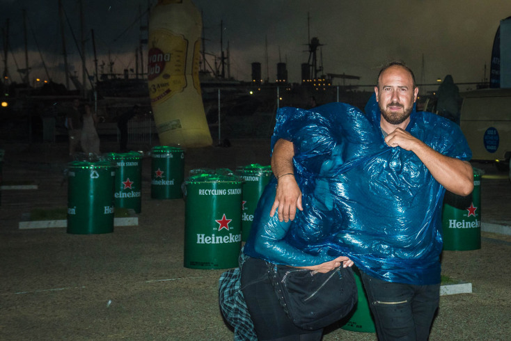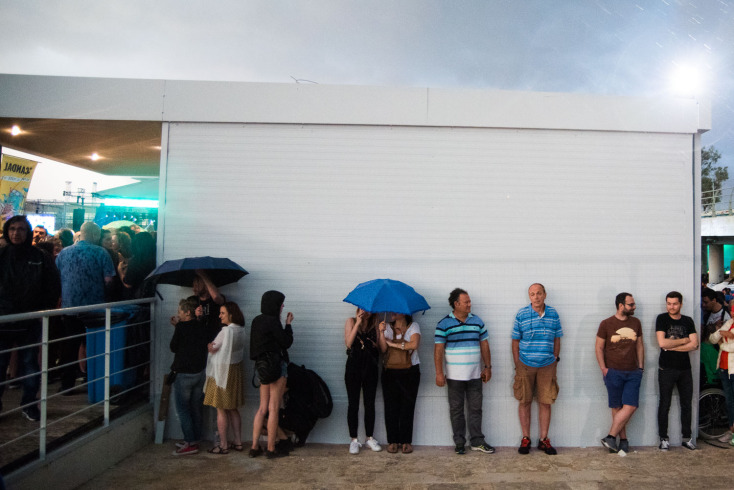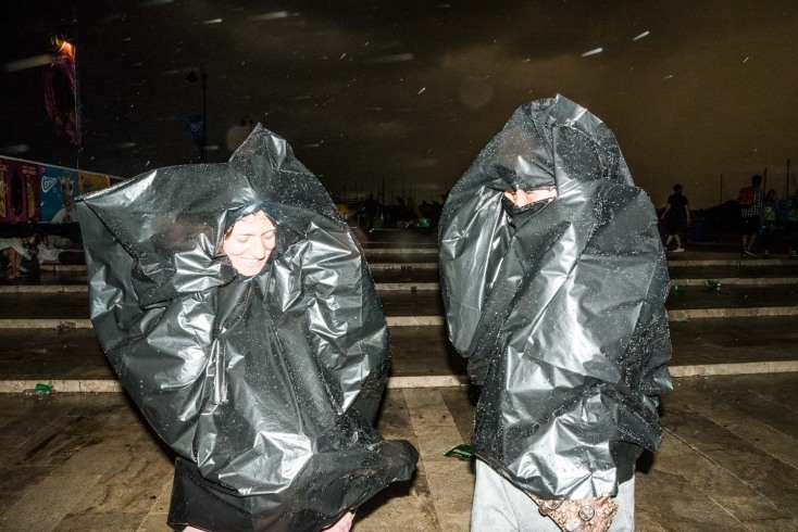 Όλος ο κόσμος προσπαθούσε να προφυλαχτεί όπου μπορούσε, εκτός από κάποιους που δεν άφησαν το κάγκελο της πρώτης θέσης ποτέ, περιμένοντας στωικά υπό καταρρακτώδη βροχή.