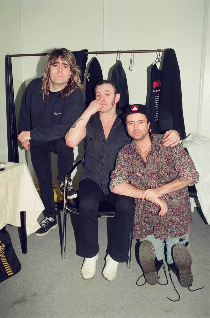 Χτυπώ την πόρτα. Μου ανοίγει ο Phil. Το δωμάτιο μικροσκοπικό. Χαμόγελα, χειραψίες. «Εκπροσωπώ δυο μεγάλα μουσικά περιοδικά της χώρας μας» εξηγώ, «και θα ήταν τεράστια υπόθεση για μένα να μου χαρίστε κάποιες εικόνες σας, ένας-ένας μα και όλοι μαζί». Δεκτό το αίτημα μου. «Οκ, ξεκίνα, αν θες, έχει και Jack εδώ να πιείς» μου λέει ο Lemmy και, ναι, ξεκινά να κάνει ένα σωρό παιδιάστικες βλακείες για με… Μορφασμούς. Φάτσες. Το δάκτυλο μες το ρουθούνι. Καλύπτει το ένα του μάτι με την βούρτσα των μαλλιών. Το ίδιο και ο Phil. O Mikkey παρότι εξίσου δοτικός & συνεργάσιμος, υπήρξε λιγότερο ευρηματικός θα έλεγα… Μα τι λέμε τώρα; Ζούσα ένα ζωντανό όνειρο!
