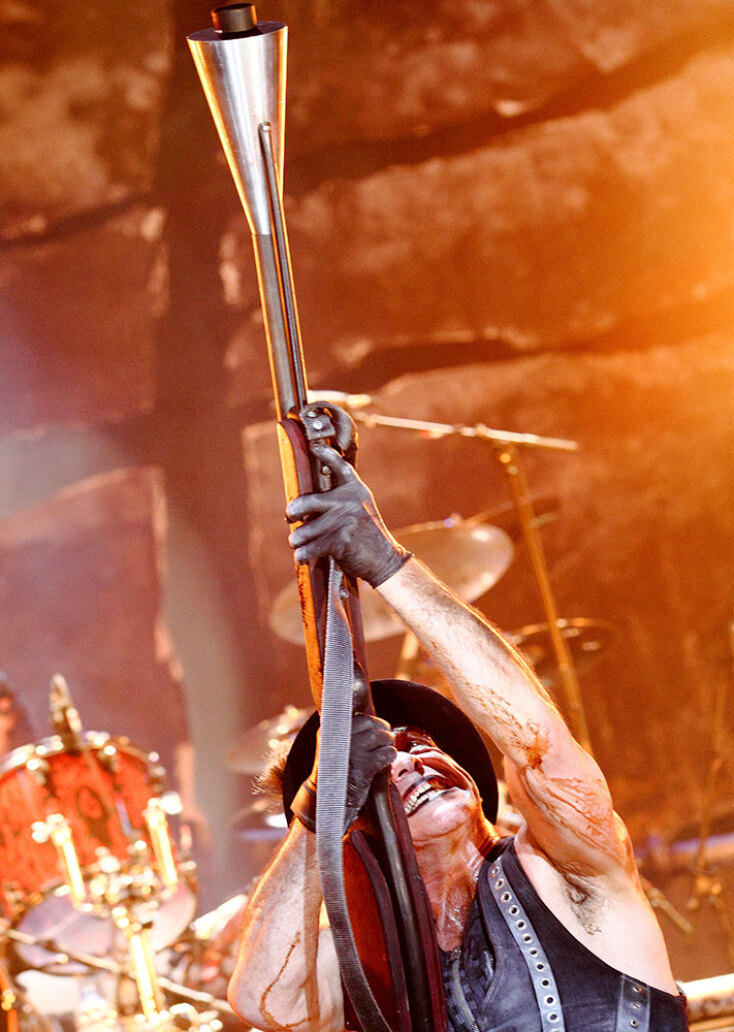 Τα καμώματα του Lindemann θεατρικά. Σε σημείο τέτοιο που δύσκολα τον εξαιρούσες από το στόχαστρο της κάμεράς σου. Και δεν ήταν μονάχα τα δεκάδες εναλλασσόμενα γκροτέσκο κουστούμια του ή και τα πολλαπλά του αξεσουάρ που άγγιζαν τα όρια του εξωπραγματικού. Ήταν κυρίως οι αμύθητες γκριμάτσες του που τον ήθελαν να κινεί ολοκληρωτικά τα νήματα της ενενηντάλεπτης παράστασης. Όσο για τα ποικίλα οπτικά εφέ που θύμιζαν συνειδητά την κόλαση του Δάντη, οι φλόγες πήγαν κι ήρθανε απ’ άκρη σ’ άκρη της σκηνής ζεσταίνοντας το μέτωπό μας κάθε τόσο και λιγάκι. Ποιος θυμάται τον και καλά αλλόφρονα οπαδό του σχήματος που πήρε φωτιά απάνω στα σανίδια με υπόκρουση το θρυλικό “Benzin”;