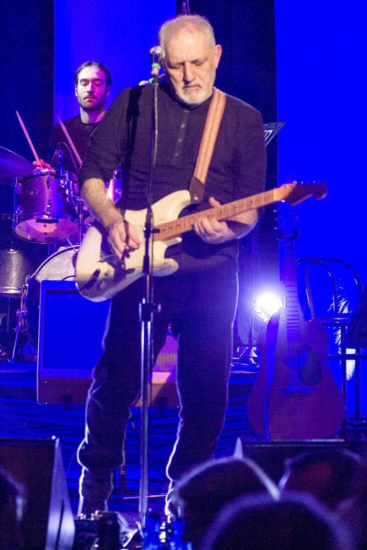 Με έναν Vox ενισχυτή στο κέντρο της σκηνής και τις αγαπημένες του κιθάρες να τον πλαισιώνουν, ο Νίκος Πορτοκάλογλου ξεχωρίζει για τα συναισθηματικά σολαρίσματά του: κάθε φορά που κλείνει τα μάτια και σκαλίζει τα τάστα σε κάνει να σκαλίζεις τα δικά σου συναισθήματα.