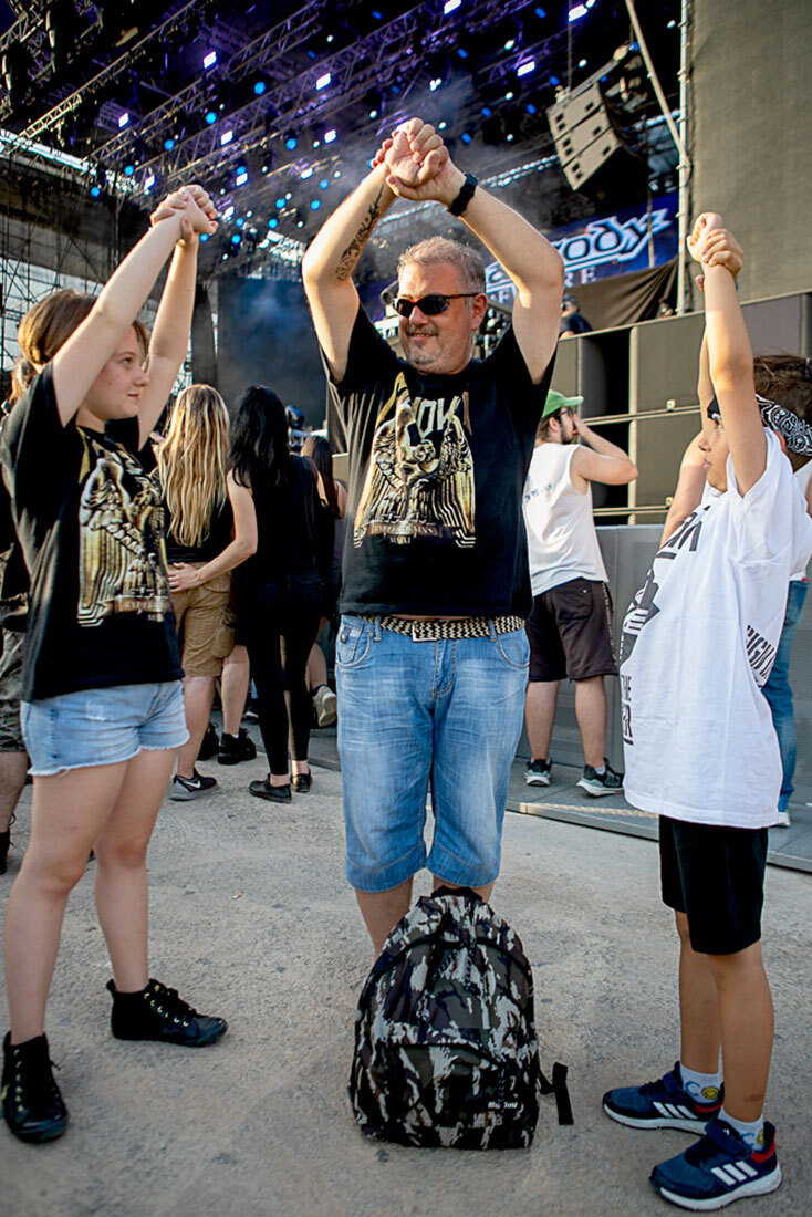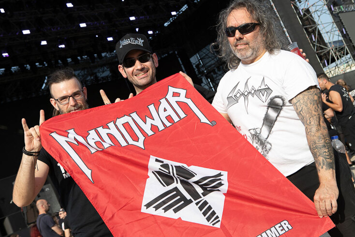 Δέκα παρά κάτι η σκηνή άρχισε να μεταμορφώνεται σε αυτό που θα ακολουθούσε στις έντεκα ακριβώς. Οι αμερικανοί επικομεταλλάδες Manowar είχαν υποσχεθεί λαγούς με πετραχήλια. Μιλούσαν για μια εμπειρία ζωής. Οι προσδοκίες τεράστιες λοιπόν εκ μέρους των φανατικών τους οπαδών. Όσο για μας τους φωτογράφους, η ρητή και κατηγορηματική απαγόρευση φωτογράφισης μας ήθελε να βράζουμε στο ζουμί μας όπως και το 2019. To ομώνυμο “Manowar” δημιούργησε πανικό εν ριπή οφθαλμού. Δίχως καμιά ανάσα, ακολούθησε το “Kings Οf Metal” για να ανάψουν τα πρώτα βεγγαλικά κάνοντας τη (μικρότερη της χρονιάς) νύχτα, μέρα.