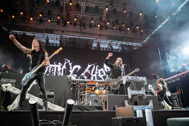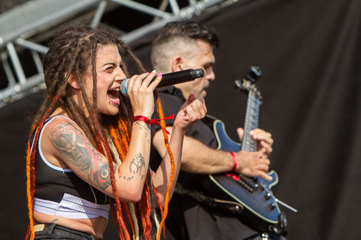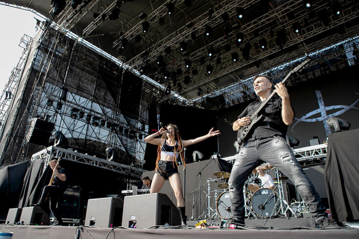 Η μέρα ξεκίνησε έξι το απόγευμα με τους δικούς μας Meden Agan να πιάνουν τον ταύρο από τα κέρατα μονομιάς, κι ας είχε λίγο λιγότερο από σαράντα βαθμούς κελσίου έξω από τη σκιά. Κι ας «χάθηκε» το πρώτο τους τραγούδι έως ότου ισιώσει ο ήχος τους. Η μπάντα δεν έχει να ζηλέψει κυριολεκτικά τίποτα από κάθε female-fronted σχήμα της Υφηλίου, τελεία και παύλα.