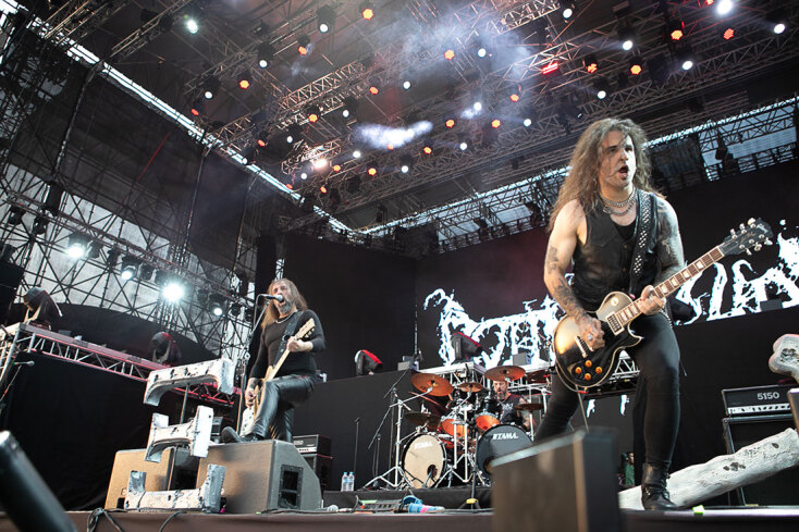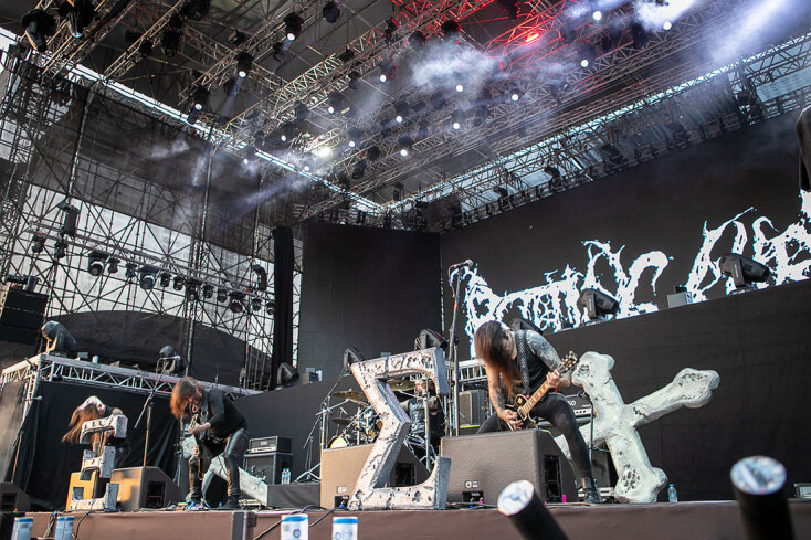 Όμως είχε έρθει η ώρα για τα παιδιά τα δικά μας από την Νέα Ιωνία. Τους ηγήτορες και πρεσβευτές του εξτρεμιστικού ήχου στη χώρα μας. Οι Rotting Christ στη δεύτερη μεγαλύτερη εμφάνισή τους στον τόπο μας, στα γεννοφάσκια τους, μετά από κείνη την αξέχαστη με τους Slayer το 2019. Το εναρκτήριο λάκτισμα ήθελε το πολεμικό "P’unchaw Kachun / Tuta Kachun" να βάζει φωτιά στην ήδη συνωστισμένη αρένα. Ο Σάκης να χαμογελά μέσα από την ψυχή του, όντας και πάλι στο φυσικό του περιβάλλον μετά από τόσα και τόσα. «Αθάνατοι» μας φώναξε και το ομώνυμο άσμα ξεσήκωσε τις πέτρες. Ήχος μπετό, σκηνική παρουσία που δεν μαρτυρούσε κανένα απολύτως «επιβεβλημένο διάλλειμα τριών χρόνων»! «Άπαγε Σατανά» και τα μυαλά στα κάγκελα που δονούντο από τους εκστασιασμένους μπροστινούς. Και στα καπάκια, μια λαίλαπα από παλιούς ύμνους: “King of the Stellar War”, “Νοn Serviam” κ.α.