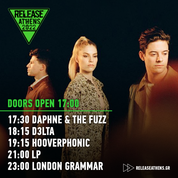 Το πρόγραμμα του Release Athens 2022 - Δευτέρα 27 Ιουνίου - Πλατεία Νερού: London Grammar, LP, Hooverphonic, D3lta, Daphne and the Fuzz.