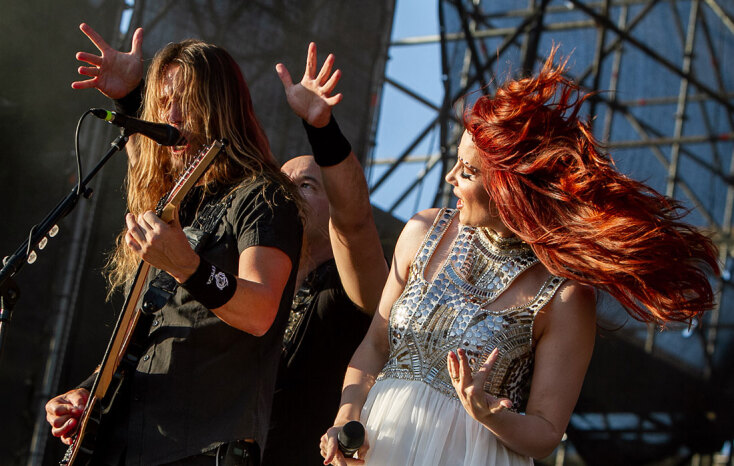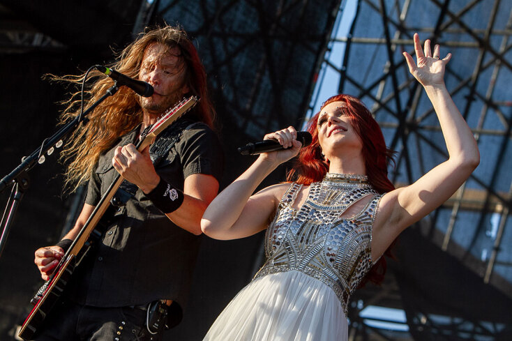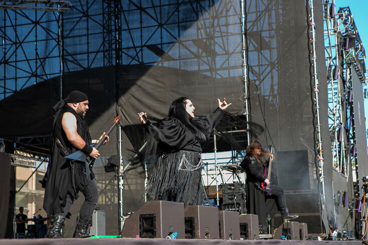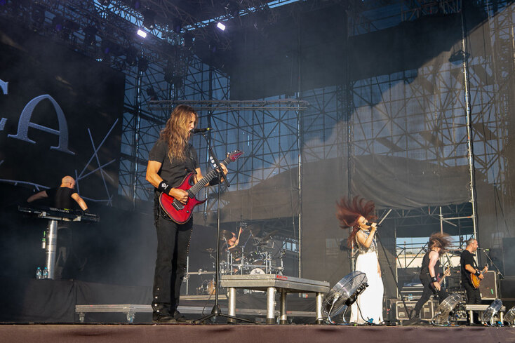 Και να που στους επικολυρικούς Epica πλέον ο κόσμος ήδη αρκετός. Άλλωστε είναι γνωστή η δημοφιλία τους στη χώρα μας εδώ και είκοσι χρόνια. Γεγονός που οφείλεται σε μεγάλο βαθμό στην πεντάμορφη Simone Simons που, όπως ζήσαμε ξανά, επιμένει σε κείνη την αξιοθαύμαστη ταπεινοφροσύνη που δημιουργεί μια τεράστια αντίθεση σε σχέση με τα φυσικά χαρίσματά της!… Δεξιά της για άλλη μια φορά ο ηγέτης του σχήματος Mark Jansen να την υποστηρίζει σθεναρά. Όσο για το σχετικά πρόσφατο “Ωmega” που έμελλε να γεννηθεί εν τω μέσω της πανδημίας, είχε έρθει η ώρα του να ανοίξει τα φτερά του από σκηνής. Όμως τα απαραίτητα πισωγυρίσματα σε «κλασικά» τραγούδια συνυπήρξαν στο ωριαίο τους πρόγραμμα. Χιλιάδες τα χέρια στον αέρα για χάρη τους.
