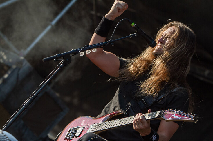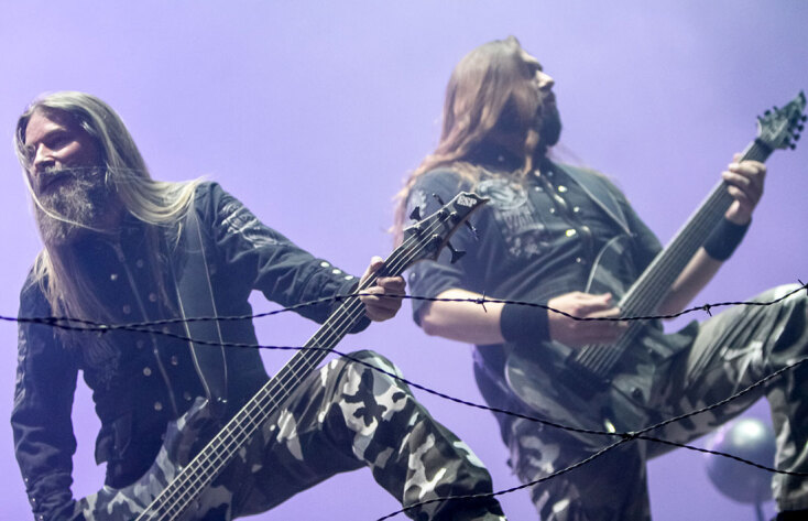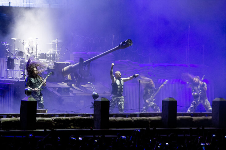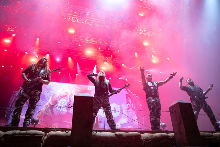 Στις έντεκα το βράδυ ξέσπασε ο «Πόλεμος του Φαληρικού Δέλτα». Σε σημείο που το εισαγωγικό “Ghost Division” των Sabaton ήθελε τους φωτογράφους και τους φανατικούς στα κάγκελα δυο φορές πιο ιδρωμένους από ότι ένα λεπτό νωρίτερα. Για λόγους αμέτρητους. Αδρεναλίνη στα κόκκινα. Στήλες φωτιάς στα δυο μέτρα πίσω στα χαρακώματα. Εκρήξεις κατά ριπάς, ομοβροντίες, έως και μπαζούκα στα χέρια του αεικίνητου Joakim που φέτος αποφάσισε να μην μιλάει πολύ ώστε να μας πνίξει στη Μουσική. Όπως επέλεξε άλλωστε και ο Hansi λίγο πριν, αφού όμως πρώτα μας το εξήγησε με πέντε λεπτά λογοδιάρροιας... Θεούλης.