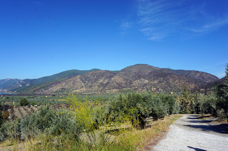 Η κατάσταση που επικρατεί σήμερα υπενθυμίζει την καταστροφή. Κινούμαστε προς Ροβιές και αφήνουμε πίσω δεκάδες χιλιόμετρα καμένου δάσους. Η εικόνα αντιφατική. Πράσινο χορτάρι έχει αρχίσει να φυτρώνει, μα το σκηνικό είναι μαύρο. Ένα σκηνικό που καλούνται να αντιμετωπίσουν στην καθημερινότητά τους οι κάτοικοι της Βόρειας Εύβοιας, με τις μνήμες από την πυρκαγιά να είναι ακόμα νωπές και τα τραύματά τους ανοιχτά.