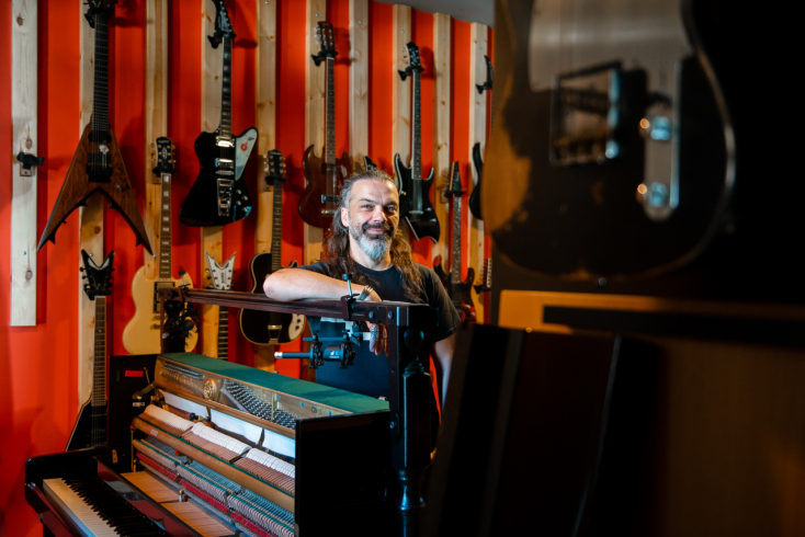 Γιατί, πιστεύω, έχει ένα διαφορετικό vibe από τα τυπικά recording studios. Είναι στον πέμπτο όροφο ενός κτηρίου με θέα την Ακρόπολη, έχει βεράντα έξω, θα βγεις, θα πιεις τον καφέ σου. Είναι μεν ένας μικρός χώρος, αλλά θεωρώ ότι υπάρχει μία ζεστή ατμόσφαιρα. Το Grindhouse μπορεί στεγάζεται σε ένα σπίτι, αλλά είναι ένα πλήρως εξοπλισμένο και καλοστημένο επαγγελματικό studio με ιδιαίτερη αισθητική. Οπότε έχει αυτή την ιδιαιτερότητα, να μπορείς να βλέπεις το φως της ημέρας, να νιώθεις άνετα και οικεία. Πέρσι προσθέσαμε ένα κορυφαίο σύστημα monitoring και ένα νέο recording room. Διαθέτουμε μια μεγάλη και ιδιαίτερη συλλογή με περισσότερες από 20 κιθάρες (Solar, Gibson, Ibanez κ.ά.), πληθώρα ενισχυτών και καμπινών (Mesa Boogie, KSR, Vox, Marshall κ.ά.), αλλά και μια μεγάλη γκάμα σε ταμπούρα και πιατίνια (Tama, Pearl, Meinl, Sabian κ.ά.) ικανά να καλύψουν ένα πολύ μεγάλο εύρος και την αισθητική του ήχου από 70s rock έως και death metal. Πρόσφατα το studio εξοπλίστηκε με ένα πιάνο Kawai και από φέτος ξεκινήσαμε μια εταιρία κατασκευής καμπινών κιθάρας. Αν συνυπολογίσεις και την 20ετή παρουσία μας στο χώρο, τότε έχεις ακόμη περισσότερους λόγους να επιλέξεις τα Grindhouse Studios Athens.