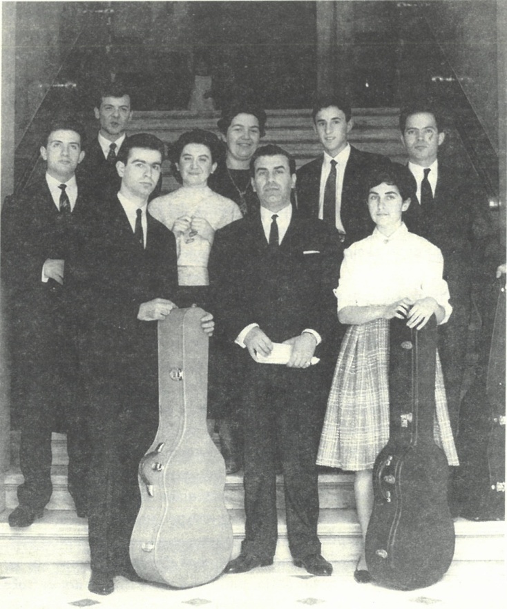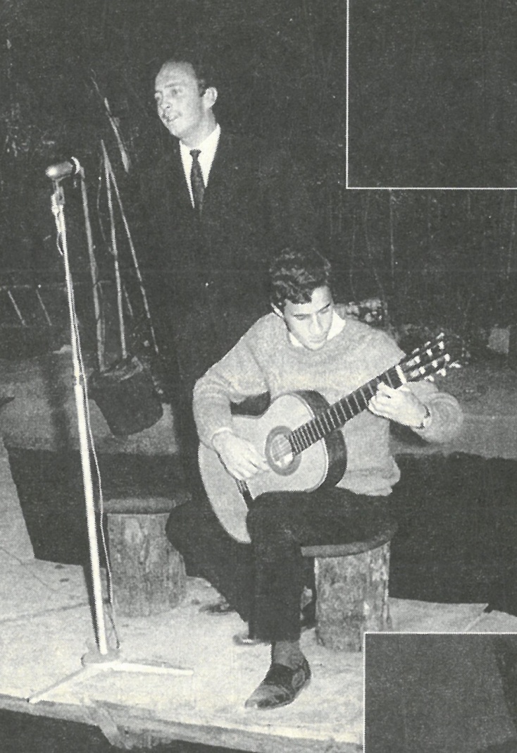 Έχει πάει στην Ισπανία για σεμινάρια με τον Αντρές Σεγόβια Τόρρες. Από τους κορυφαίους κιθαρίστες διεθνώς. Έχει επιστρέψει φορτωμένος παρτιτούρες. Τις αντιγράφουν οι μαθητές του με το χέρι. Όπως στα μοναστήρια, τις γραφές οι καλογέροι. Τον εμπνέει ότι το μέλλον του θα είναι με μια κιθάρα. Η ζωή του αλλάζει. Σύντομα θα αρχίσει τις δημόσιες εμφανίσεις. Το 1961 θα δώσει το πρώτο του ρεσιτάλ στο Ελσίνκι στην Φιλανδία. Ο Φάμπας θα τον προτείνει να συνοδεύει την Ντόρα Γιαννακοπούλου στην μπουάτ «Το συμπόσιο των Ευγενών» του Γιώργου Μπουκουβάλα.