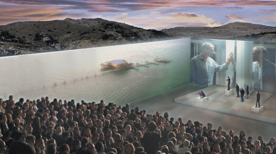 Σκέφτομαι τους θεατές στην περφόρμανς του Άιτκεν. Με τα έξυπνα κινητά στο χέρι. Να τουιτάρουν περί του έργου. Σε ζωντανό χρόνο. Σκέφτομαι την έννοια του ζωντανού χρόνου (δικαιούται να θεωρείται ζωντανός, ακόμα κι όταν δεν τον ζεις ο ίδιος;). Της ζωντανής μετάδοσης της πληροφόρησης. Που χάνει την αξία της στο ανέβασμα του επόμενου πόστ. Type. Post. You’re old news. Σκέφτομαι πως δημιουργούμε μόνοι μας το περιβάλλον που ενέπνευσε τον καλλιτέχνη. Ο Άιτκεν λέει πως ζούμε στον κόσμο του Μαύρου Καθρέφτη. Έναν κόσμο κορεσμένο από την πληροφορία. Έναν κόσμο που δεν αλλάζει, όσο κι αν τον ταξιδέψεις. Με λίγα λόγια: είτε είσαι στη μέση της ερήμου είτε στην Ύδρα, ο υπόλοιπος κόσμος εισβάλλει –ως μήνυμα, κλήση, ηλεκτρονικό έγγραφο– στο σκηνικό σου. Ο ψηφιακός σου κόσμος επικαλύπτει τον πραγματικό. You can run. But you can’t hide. Όπου κι αν είσαι, είσαι παντού. Και κάπως έτσι καταλήγεις να μην είσαι πουθενά. Με βαρέθηκες; Άλλαξε κανάλι.