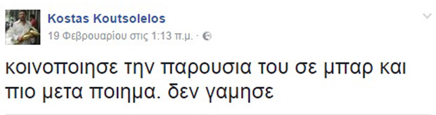 Κώστας Κουτσολέλος. Ένα σοβαρό τρολ του fb στη Στέγη