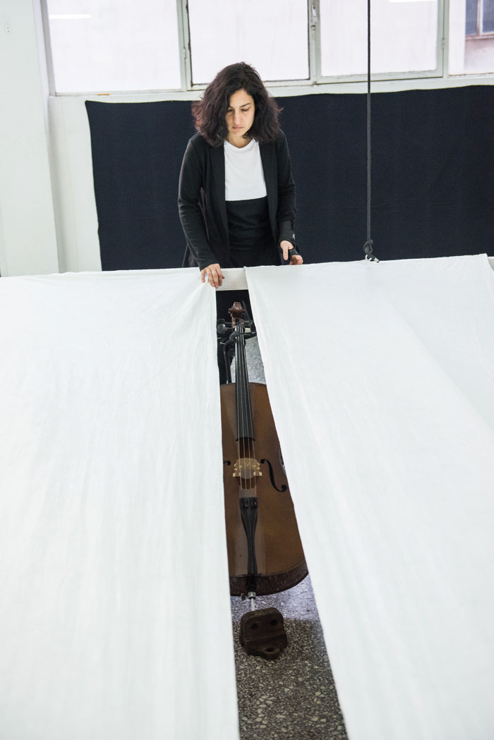 Πρώτα απ’ όλα η μουσική από το κουαρτέτο εγχόρδων που ερμηνεύουν μουσική του Στιβ Ράιχ και του Φίλιπ Γκλας στη μέση της σκηνής, γύρω από το φωτεινό κύκλο, δονεί τα σώματα – όπως και οι ήχοι που θα προκαλέσει ο Jan Van de Engel. Η αίσθηση που θα δίνει ο φωτισμός είναι αυτή που δημιουργούν τα φυσικά φαινόμενα. Ακτίνες ήλιου που περνούν μέσα από τα σύννεφα, αγριάδα, χαραυγή, ομίχλη, την αίσθηση είναι και δεν είναι, την αίσθηση πως κάποια στιγμή θα πέσει ο ουρανός και θα σε πλακώσει. Ο ουρανός από χαρτί είναι και το μοναδικό σκηνικό μας. Παίζουμε επίσης πολύ με τη γεωμετρία. Τα ρούχα μινιμαλιστικά και μαυρόασπρα, αλλά σε κάποια θα υπάρχουν «σκίτσα» που μοιάζουν με φαγιούμ, και θα εμφανιστούν στο καθαρτήριο-νεκροταφείο.
