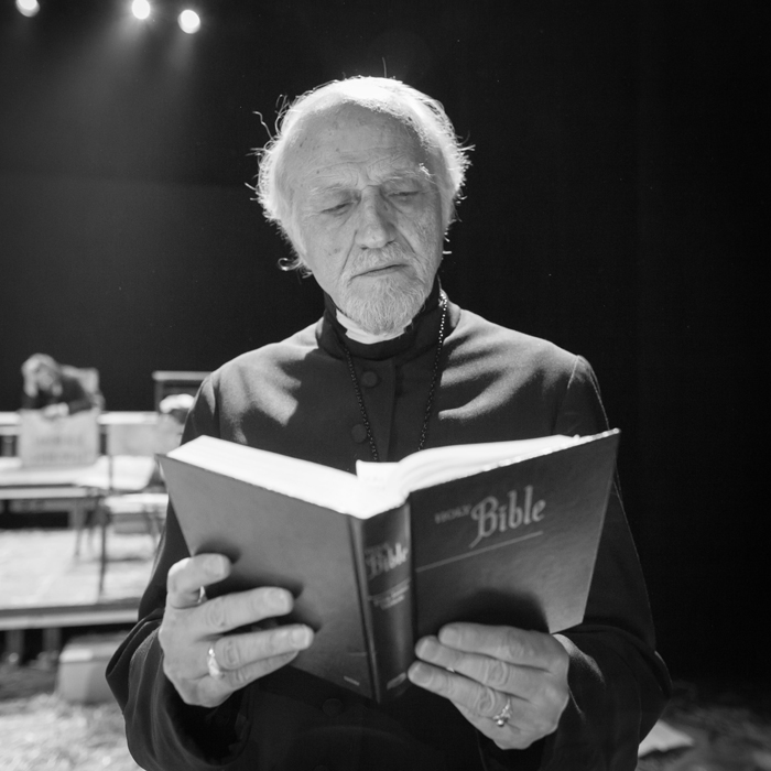Στο πρόσωπο του Χένιεκ συνοψίζεται η στάση της Καθολικής Εκκλησίας. Με το που φόρεσα το ράσο του ιερέα μπήκα, ως διά μαγείας, κατευθείαν στο ρόλο. Ο ιερέας που φτάνει να γίνει πρωτοπρεσβύτερος είναι περίεργη προσωπικότητα, σκοτεινή, δόλια. Υφίσταται φρικτά μαρτύρια όταν τον ανακρίνουν οι Σοβιετικοί και αργότερα οι Εβραίοι, αλλά είναι βράχος, δεν μαρτυράει τίποτε εκεί που οι άλλοι σπάνε. Κάποια στιγμή, σε μεγάλη ηλικία αρρωσταίνει, παθαίνει καρκίνο. Ο χαρακτήρας του φαίνεται και από την σκληρή του απόφαση να μην πάρει αναλγητικά. Όταν όμως οι πόνοι γίνονται ανυπόφοροι, αναγκάζεται να πάρει τα φάρμακα, τα οποία ωστόσο του δημιουργούν παρενέργειες και τον διαταράσσουν. Εκεί πια μένει αποδυναμωμένος, δεν έχει άλλες αντιστάσεις· μαζί με τους πόνους έχουν έρθει και οι τύψεις: “έρχονται γύρω μου”, λέει, “με βλέπουνε, η Ντόρα, ο μικρός Ιγκόρ ο γιος της… Δεν μπορώ να απαλλαγώ, δεν υπάρχει πια φυγή, δεν υπάρχει Θεός.” Με αυτά τα λόγια κλείνει ο ρόλος μου».