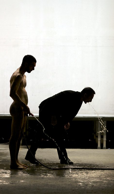 Παρακολουθώντας την «Πρώτη Ύλη» στο Εδιμβούργο –ως παράλληλη δράση της έκθεσης «From Death to Death and other small tales» της Συλλογής Δημήτρη Δασκαλόπουλου σε συνεργασία με τη Scottish National Gallery of Modern Art– ένιωσα πραγματικά κάποιες ακίδες να χώνονται στο δέρμα παρακολουθώντας το επίμονο και επίπονο σφυρηλάτημα του μαυροντυμένου δημιουργού Δημήτρη Παπαϊωάννου πάνω στο γυμνό «παραγόμενο» Μιχάλη Θεοφάνους (αν και μερικές φορές έμοιαζε να συμβαίνει το αντίθετο...). Με τη σωματική τόλμη και άσκηση να εντείνονται και να δοκιμάζουν νέα όρια σε σχέση με αυτά που είχα δει τον περασμένο Ιούνιο στην Αθήνα. Τώρα και για ένα μήνα, το κοινό θα έχει την ευκαιρία να δει τη μετα-τελετή μεταμόρφωσης της «Πρώτης Ύλης» στο χώρο όπου γεννήθηκε και απ’ όπου είμαι σίγουρη ότι θα εκκινήσει ξανά (σαν το τραπέζι-καράβι που διασχίζει «σφυρίζοντας» τη σκηνή).