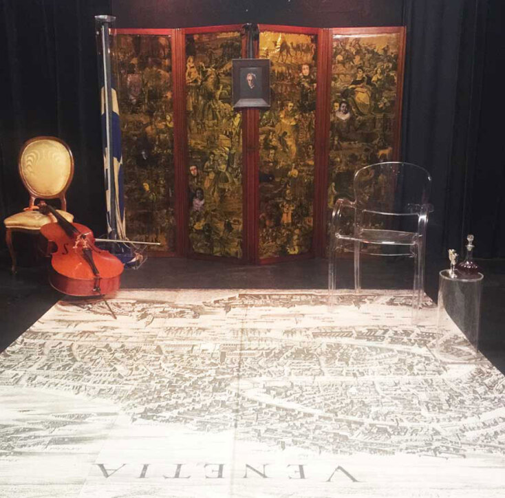Ο θεατής μπαίνει από την πρώτη στιγμή στο κλίμα της εποχής με τα λιτά σκηνικά του Μάριου Βουτσινά, όπου δεσπόζει το εκπληκτικό παραβάν με το κολάζ των βενετσιάνικων φωτογραφιών και χαρακτικών να λειτουργούν με τέτοιο τρόπο ώστε να τονίζουν ακόμη περισσότερο την επιβλητική, φινετσάτη, δυναμική παρουσία της Αγγέλικας η οποία καθηλώνει με τη συγκλονιστική της εξομολόγηση, τις εκφράσεις και τις κινήσεις της. Ο θεατής νιώθει να κατακλύζεται από διάφορα αντικρουόμενα συναισθήματα με τη βαθιά συγκίνηση να είναι το ισχυρότερο όλων.